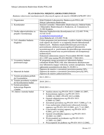 PLAN BADANIA MIĘDZYLABORATORYJNEGO