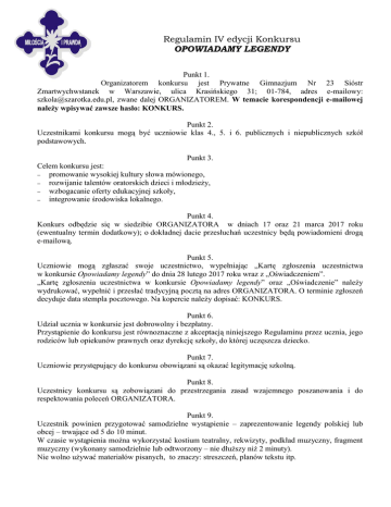 Regulamin IV edycji Konkursu OPOWIADAMY LEGENDY