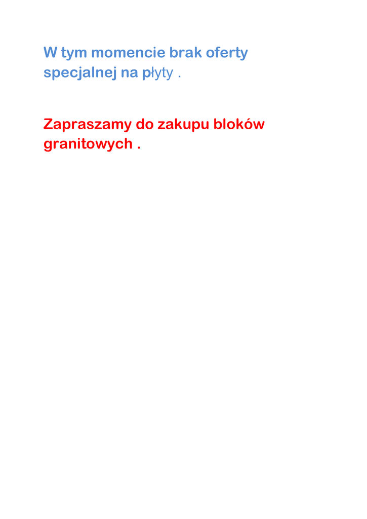 W tym momencie brak oferty specjalnej na płyty . Zapraszamy do zakupu bloków granitowych .