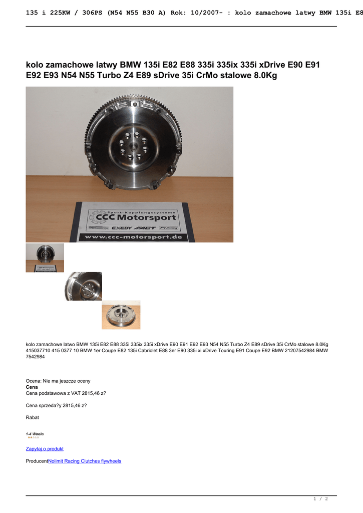 kolo zamachowe latwy BMW 135i E82 E88 335i 335ix 335i xDrive