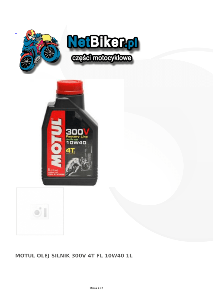 MOTUL OLEJ SILNIK 300V 4T FL 10W40 1L Strona 1 z 2 Olej do motocykli sportowych Olej 100% syntetyczny – Technologia podwójnych estrów Zastosowanie: Motocykle wyścigowe z silnikami czterosuwowymi o wysokich osiągach, z /bez zintegrowanej skrzyni biegów, z suchym/mokrym sprzęgłem; motocykle wyścigowe, których silniki pracują w szerokim zakresie temperatur i obrotów: wyścigi torowe, SuperSport, enduro, endurance, górskie, żużlowe, terenowe, M Inne: motocykle używane w ruchu miejskim, skutery, ATV, mopedy wyposażone w katalizatory. Własności: Standardy:powyżej wymaganych standardów; wpływ na działanie mokrego sprzęgła sprawdzony testem JASO T904 Referencje: Alstare Word SuperSport, National Moto Endurance, Suzuki Word MX Technologia podwójnych estrów umożliwia zwiększenie mocy silnika o 3%. Testy tribologiczne wykazały niski współczynnik tarcia badanych polimerów i złożonych estrów. Niski współczynnik tarcia zmniejsza tarcie wewnątrz silnika, a w konsekwencji zwiększa jego moc. Ochrona silnika: 0% ubytków potwierdzone testem Boscha ASTM D6278 Ochrona skrzyni biegów: odporność zwiększona o 66%, potwierdzone 20- godzinnym testem KRL (CECE L-45-A-99) – test smarów skrzyń biegów, 10 razy dokładniejszy od testu Boscha. Dodatkowa moc na tylnym kole: ulepszona praca mokrego sprzęgła. Większa moc i dynamika pracy silnika, silnik łatwiej osiąga wyższe obroty. Zalecenia: Można mieszać z olejami syntetycznymi i mineralnymi. Wymiana oleju: Dostosować do własnego zapotrzebowania. Kraj produkcji: Francja Strona 2 z 2