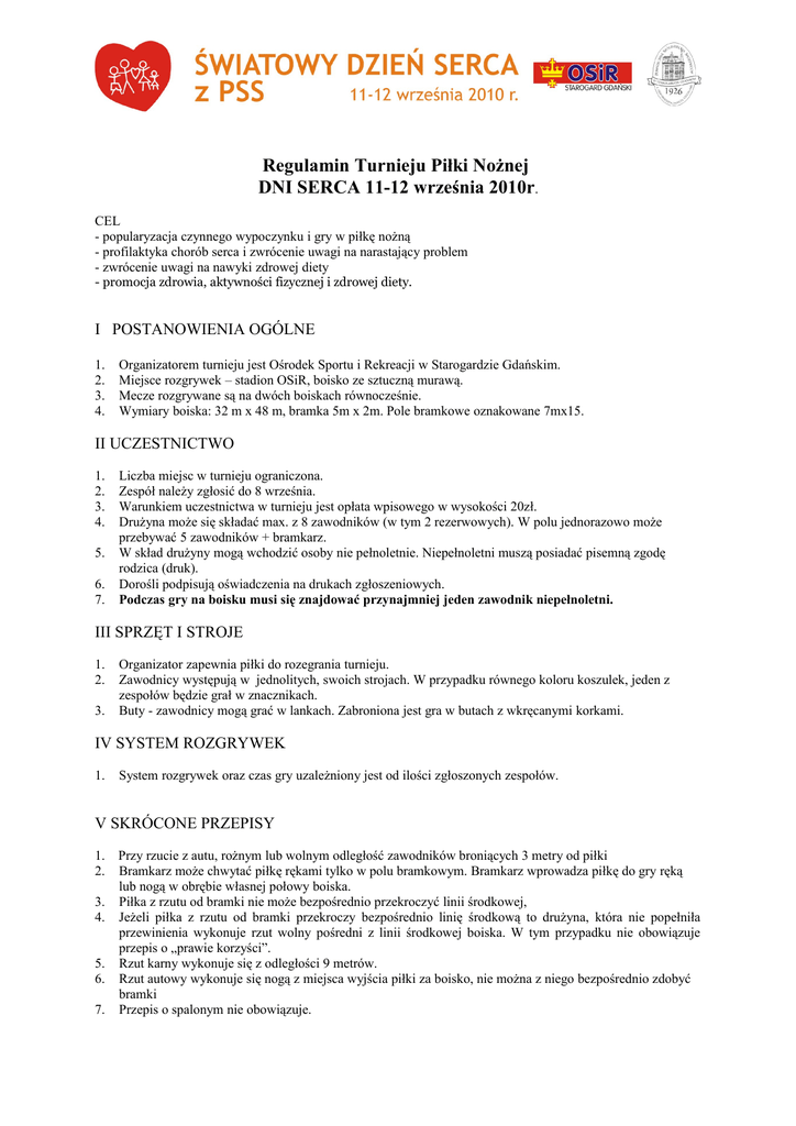 Regulamin Turnieju Piłki Nożnej DNI SERCA