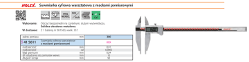 Suwmiarka cyfrowa warsztatowa z mackami pomiarowymi Norma Wykonanie: W dostawie: STAL mm NIERDZ. Inch Odczyt bezpośredni na czytelnym, dużym wyświetlaczu. Solidna obudowa metalowa. Z 1 baterią nr 081560, wielk. 357. 42A zakres pomiaru 41 5611 A1 Cal mm Suwmiarka cyfrowa warsztatowe z mackami pomiarowymi rozdzielczość rozdzielczość błąd graniczny ⌀ odsadzenia do pomiarów wewn. długość szczęk 300 XXX mm cal mm mm mm 0,01 0,0005 0,04 10 90
