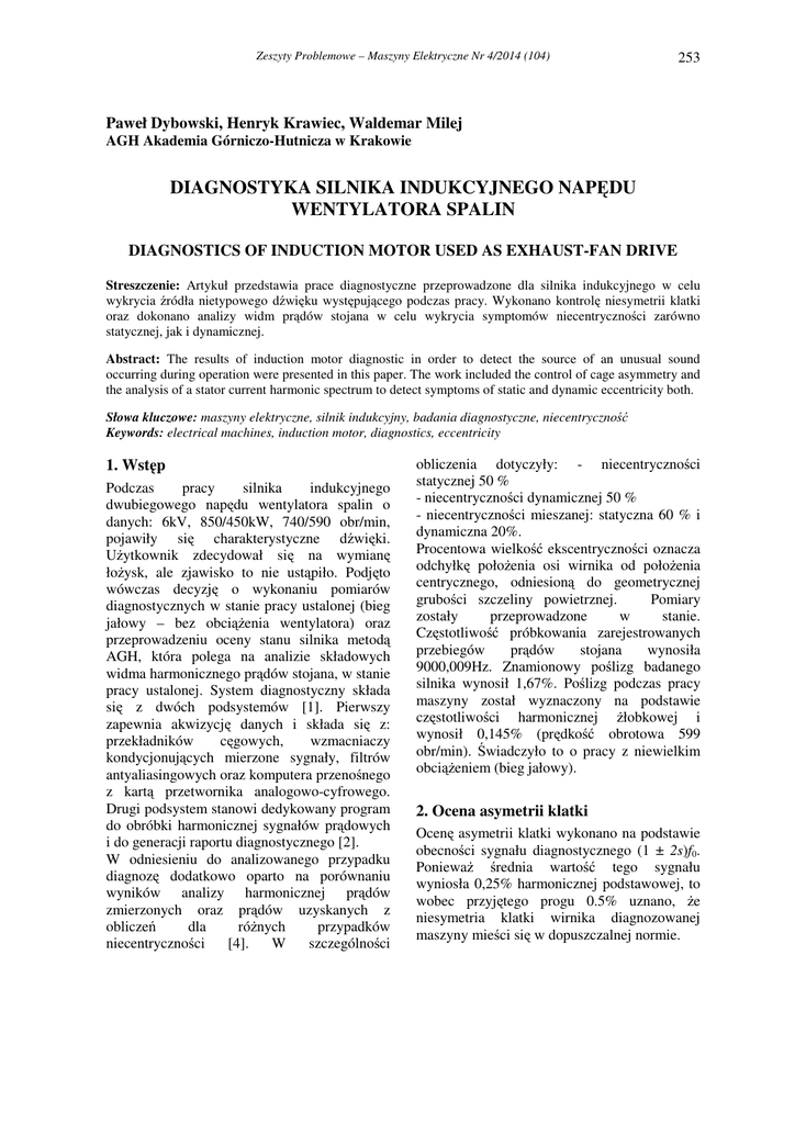 diagnostyka silnika indukcyjnego napędu wentylatora spalin
