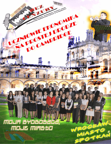 Nr 103 Maj/Czerwiec 2009 str. 2 Moi drodzy, ja, zaprawiona w dziennikarskich bajach Wasza reporterka, nie wiem, od czego zacząć, ąć, bo tak wiele się si ostatnio w naszej szkole wydarzyło. Ale w tym numerze mamy skupić się przede wszystkim na maturzystach, bo oni opuszczają opuszczaj mury swojej budy, niestety, na zawsze, bo nie słyszałam, aby ktoś kto nie miał być dopuszczony do egzaminu maturalnego, jak to się si zdarzyło w ubiegłym roku. Nie pojawią się juŜŜ we wrześniu wrze ( no, chyba, Ŝe gościnnie) cinnie) przystojni sportowcy z 3a, a kolejnej imprezy szkolnej nie poprowadzi znany z aksamitnego głosu Piotr Witkowski. CóŜ, takie jest Ŝycie i oby naszym absolwentom absolwento poszczęściło się na maturze i w Ŝyciu. yciu. W tym numerze absolwenci jeszcze raz będą mogli przyjrzeć się zdjęciom ciom swoich klas i… w drogę,, na studia, do pracy, do Anglii, Irlandii, zwiedzać, zwiedza pracować, robić kasę, doznawać goryczy i rozczarowań, rozczarowa realizować marzenia, zawierać przyjaźnie i związki małŜeńskie… Ŝ ńskie… do wyboru. Ja, oczywiście, Ŝyczę samych prostych dróg, jako Wasza koleŜanka, anka, która, podobnie jak Wy, niejedno w tej budzie przecierpiała. Bo, czyŜ nie?! Pamiętacie tacie kartkówki, które jakimś ja sposobem przeradzały się w godzinne prace klasowe? klaso Pamiętacie złe nauczycielskie humory? Pamiętacie tacie instynkt wychowawcy, który nie wiadomo jak, bezbłędnie rozpoznawał zpoznawał fałszywe zwolnienia i inne ściemy? ciemy? Tak, tak, dzisiaj to wszystko mo moŜna juŜ włoŜyć między bajki, ale kiedyś moŜna było się nieźle nieź nagłowić, by nauczyciela wykołować. Kogo zapamiętacie? tacie? Pana od matematyki czy pani panią od polskiego, panią, co mówiła za cicho czy tę,, którą było słychać na całym piętrze? Panią, która mówiła, Ŝe e macie czytać czyta i unikać głupich imprez masowych, choć je tak lubicie? KaŜdy Ka z tej szkoły weźmie coś dla siebie a nasz szanowny Olimp niech ma świadomość, Ŝe stanie się częś ęścią uczniowskich wspomnień, choć o niektórych gagatkach chętnie tnie by natychmiast zapomniał. Jak widzicie, mam dzisiaj nastrój bardzo refleksyjny, reflek no, ale nie będzie juŜ na korytarzu sportowców z 3a, to si się nie dziwcie… Nie byłabym sobą,, gdybym pozostała tylko refleksyjna bez odrobiny złośliwości. ci. Kochani, na zakończeniu zako roku dla maturzystów było super, ale niestety, nie wszyscy wiedzieli, jak ja się na taką uroczystość ubrać.. Mówię Mówi to juŜ nie dla tych, co odchodzą, ale dla tych, którzy absolwentami dopiero będą. b Błagam, nie popełniajcie tego samego błędu! ędu! Nie ubierajcie na najwa najwaŜniejszą szkolną uroczystość powyciąganej bluzy dresowej(!!!) lub mini mi ledwie zakrywającej cej tyłek. Nie zakładajcie Ŝarówiastego Ŝółtego do czarnego, bo mój zmysł estetyczny po raz drugi tego nie wytrzyma. Na szczęście cie chłopacy wiedzieli, jak się si ubrać. W garniturach i krawatach byli jeszcze bardziej przystojni niŜ ni zwykle. Skoro pozwoliłam am sobie na małą mał złośliwość, to pójdę dalej i rzucę kamyk na Olimp. Kochane boginki! Nie ubierajcie na najwaŜniejszą szkolną uroczystość uroczysto dŜinsowych spodni, bo to, ( nie chcę pouczać), raczejj strój sportowy, a wiadomo, Ŝe przykład idzie z góry. A poza tym bogini na sportowo zbytnio kontrastuje z boginią na wieczorowo, a tu chodzi o to, Ŝeby Ŝ w ogóle było ładnie i aby nie było, do czego się przyczepić przyczepić. Prawda? Maturzystów więcej czepiać się nie będę, ale reszcie tego nie obiecuję… obiecuj Pa, miłych wakacji na przykład w Alzacji. Wasza Endżyl Zamykamy rozdział związany ze wspomnieniami. Przychodzi czas, aby zastanowić się, co dalej. Warto przyjrzeć się, co maturzyści planują dalej robić po opuszczeniu naszej szkoły. Większość z zapytanych odpowiadała, iŜ wybiera się na studia. Absolwenci Ekonomika myślą zarówno o uczelniach prywatnych, nych, jak i o UKW, UMK, Politechnice Poznańskiej, a nawet Wojskowej Akademii Technicznej. Dominują kierunki związane z profilem naszej szkoły, więc; rachunkowość, finanse, bankowość, administracja czy zarządzanie. Jako swój wybór ankietowani podawali takŜe kierunki humanistyczne, związane z dietetyką, psychologią, kosmetyką. Zaskoczeniem był kierunek wojskowy - specjalizacja materiały wybuchowe i pirotechnika lub studia na Akademii Marynarki Wojennej. Wielu chłopców wybrało wychowanie fizyczne na UKW, co związane związane jest z chęcią kontynuowania własnej kariery sportowej. Dziewczyny natomiast marzą o tym, by otworzyć kluby fitness, studia urody, SPA, czy własne salony kosmetyczne. Nieliczni mają zamiar po szkole zrobić sobie rok przerwy przer od nauki, inni wierzą, Ŝe po studiach otworzą własne firmy, czego im z góry Ŝyczymy. Są teŜ tacy, co szczęścia zamierzają szukać za granicą. Po ustabilizowaniu Ŝycia zawodowego przyjdzie czas na załoŜenie rodziny. Wszyscy planują, Ŝe będzie ona szczęśliwa i wiodła dostatnie ie Ŝycie. Waszym marzeniem jest równieŜ domek z ogródkiem i basenem, gromadką słodkich dzieciaczków i starzenie się u boku ukochanej osoby. Nie zapominając o najbliŜszej przyszłości, absolwenci biorą takŜe pod uwagę mile spędzone wakacje. Wszystkim Wam Ŝyczymy yczymy spełnienia marzeń i realizacji celów. O Waszych planach poinformowała przeglądająca ankiety Daria Pawska. Nr 103 Maj/ Czerwiec 2009 str. 3 Drodzy Absolwenci Rocznik 2009 ! Mam nadzieję, Ŝe wspomnienia o szkole, nauczycielach i szkolnych przyjaciołach będą piękniały z kaŜdym rokiem. Przed Wami nowy etap Ŝycia, rozpoczynając go pamiętajcie o słowach poety, L. Staffa: "Niech Cię nie niepokoją Cierpienia twe i błędy. Wszędy są drogi proste Lecz i manowce są wszędy. O to chodzi jedynie, By naprzód wciąŜ iść śmiało, Bo z