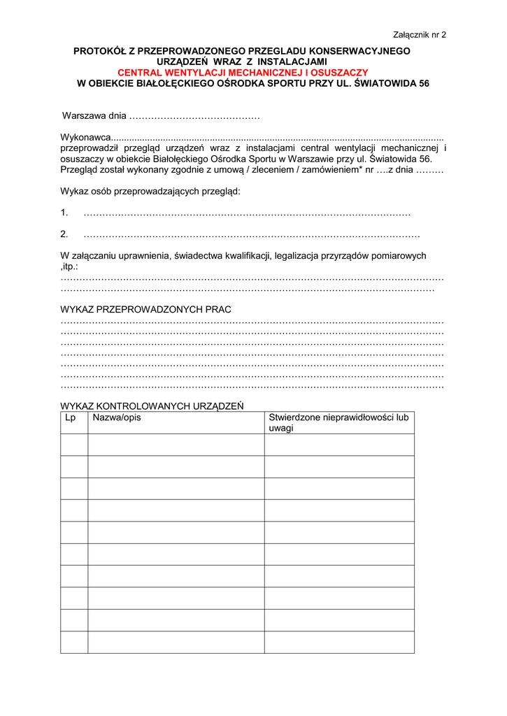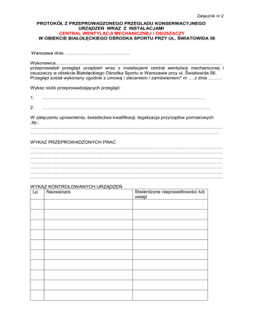 Załącznik nr 2 Protokół przeglądu urządzeń