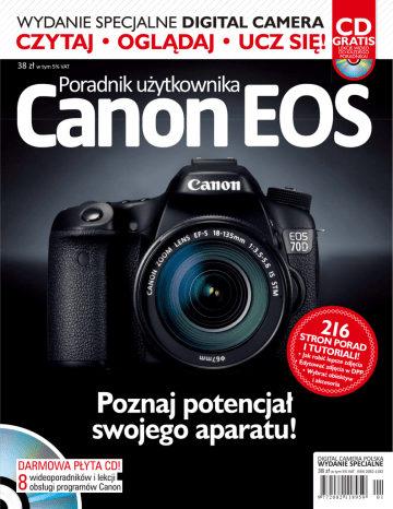 WYDANIE SPECJALNE DIGITAL CAMERA CZYTAJ • OGLDAJ • UCZ SI! CD GRATIS LEKCJE WIDEO DO KADEGO PORADNIKA! 38 z w tym 5% VAT Poradnik uytkownika EOS 216 STRON I TUTOPORAD R • Jak ro bi leps IALI! ze z •E dytowa djcia z • Wybr djcia w DPP a obie i akceso ktyw ria Poznaj potencja swojego aparatu! DARMOWA PYTA CD! 8 wideoporadników i lekcji obsugi programów Canon DIGITAL CAMERA POLSKA WYDANIE SPECJALNE 38 z w tym 5% VAT ISSN 2082-1182 ROZDZIA PIERWSZY Obsuga aparatu 6 Panuj nad lustrzank! ..............................8 Opanuj podstawy obsugi lustrzanki ...18 Ekspozycja – nic trudnego ....................28 Twórcze wykorzystanie obiektywów...38 Popraw ostro swoich zdj! ..............48 24 sposoby na lepsze zdjcia nocne ....58 ROZDZIA DRUGI Akademia EOS 68 Ogniskowa ...............................................70 Ustawianie ostro ci ................................74 Gbia ostro ci ........................................80 Przysona .................................................84 Czas otwarcia migawki ..........................88 Tryby fotografowania .............................92 Tryby pomiaru wiata ...........................96 Balans bieli ........................................... 100 Przetwarzanie obrazu cyfrowego ..... 104 Lampa byskowa .................................. 108 Czuo (warto ISO) ........................ 112 Formaty plików i karty pamici ........ 116 Histogramy ........................................... 120 Filmowanie lustrzank........................ 124 Zasilanie aparatu .................................. 128 Funkcje indywidualne ......................... 132 Fotografowanie w trybie Live View .. 136 Tryby pracy migawki ........................ 140 ROZDZIA TRZECI Poznaj rmowe oprogramowanie Canona 144 Naucz si posugiwa edytorem zdj Canona .......................................... 146 Przetwarzaj jednocze nie wiele zdj .. 150 Jak zmienia style obrazów ................... 153 Zamie trzy zdjcia w doskona panoram ................................................ 154 Wykorzystaj EOS Utility........................ 156 Katalogowanie fotograi ....................... 159 ROZDZIA CZWARTY Wyposaenie podstawowe 160 Jasne teleobiektywy ............................. 162 Telekonwertery..................................... 171 Obiektywy szerokoktne .................... 172 Pionowy grip ......................................... 181 Obiektywy makro ................................. 182 Obiektywy superzoom......................... 196 Wyzwalacze zdalne migawki .............. 205 Lampy byskowe ................................... 206