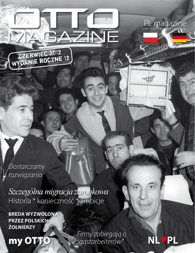 PL magazine Czerwiec 2012 | Wydanie roczne 12 + English summary 2012 c e i w r e z C ne 12 z c o r e i n Wyda Dostarczamy rozwiązania Szczególna migracja zarobkowa Historia * konieczność * ambicje brEda wYZwolona PrZEZ Polskich ŻołniErZY my otto Firmy zabiegają o „gastarbeiterów” nl♥Pl SPIS TrEŚCI 8 23 53 32 58 40 8 Gastarbeiterzy? MILE WIDZIANI CZY TEŹ NIE! 14 migracja NIE JEST POJĘCIEM NOWYM 18 21 23 32 38 43 48 Hiszpańcy imigranci 53 54 migranci zarobkowi z europy brukselski punkt widzenia nie dzielimy personelu my OttO Jak wygląda przysztość migracji zarobkowej? HISTOrIA LUBI SIĘ POWTArZAĆ 25 O reakcjach w polsce i europie na agencyjny i własny bohaterstwo Polacy w Holandii nl♥Pl 58 Ksiádz Krzysztof Obiedzinski ŚrODKOWEJ I WSCHODNIEJ 30 nie dostarczamy ludzi, dostarczamy rozwiązania otto Magazine | 3 vOOrWOOrD / FOrWOrD Omgaan met de media is een kunst op zich. Sparrow & Partners begeleidt en adviseert al sinds 1988 verschillende bedrijven bij hun contacten met journalisten. Wij zijn gespecialiseerd in het opbouwen en onderhouden van waardevolle mediarelaties. Voor onze klanten streven wij naar een optimale positionering en zichtbaarheid in de media. Wilt u weten wat wij voor u kunnen betekenen? Bel naar 070 3620808 en dan bespreken we graag de mogelijkheden met u. OttO magazine verschijnt twee maal per jaar en is een uitgave van OttO work Force. Dokładnie pięćdziesiąt lat temu amerykański uczony wymyślił pojęcie ,,globalnej wioski’‘, aby redactie adres coördinatie: Jonathan lucas, martine van de mortel redactie: Paul ’t lam, Jonathan lucas, martine van de mortel Keizersveld 51 nl – 5803 aP Venray Postbus 5145 nl – 5800 Gc Venray t + 31 (0) 478 529999 F + 31 (0) 478 529900 [email protected] www.OttOworkforce.eu PrOdUctie & VOrmGeVinG ron naus, FK media b.v. www.fkmedia.nl drUKKeriJ PreVision Graphic solutions OPlaGe 7.500 stuks Sparrow & Partners Financial & Corporate Communications | Surinamestraat 23 | Den Haag | www.sparrowenpartners.nl nOwi eUrOPeJczycy Het OttO maGazine is mede mOGeliJK GemaaKt dOOr: airport niederrhein artradius athlon athlon (bartherdeal) benn best western bP nederland bV ciber de maassche bV de Vereenigde deloitte belastingadviseurs bV deutsche bank drukkerij van de munckhof eduper eU tax service evenementen Hal Facet'n Flextronics Hagro Hanos Holla advocaten Holland zorg Hoogvliet supermarkten Hoveniersbedrijf Keuten van loon id checker Kc Handel KPmG staffing & Facility services bV martin cuijpers mens makelaar Personato PHc Quintic Products bV rOc de leijgraaf rosec security service2media sparrow & Partners Financial & corporate communications stepco taylor mates t-mobile to be One topparken van der steenhoven advocaten van Heijster bV wejebe Garage bV wyjaśnić fakt, że świat coraz bardziej przypomina jedno miejsce. Dzięki środkom masowego przekazu jesteśmy niezwłocznie informowani, o tym, co dzieje się we wszystkich zakamarkach świata, a w dzisiejszych czasach już nawet podróż w te zakątki można kupić w przystępnej cenie. Stajemy się obywatelami świata. Inne kultury są nam coraz mniej „obce”, dzięki czemu w wielu miejscach możemy się poczuć jak w domu. Służy to turystom, służy to studentom, którzy za granicą odbywają staż, służy to również gastarbeiterom. Praca za granicą staje się zjawiskiem coraz bardziej powszechnym. Jest to jednocześnie dobre zjawisko, ponieważ w różnych krajach Europy Zachodniej w wyniku starzenia się społeczeństwa pojawia się niedobór na rynku pracy. Areną naszej działalności jest właśnie międzynarodowy rynek pracy. OTTO Work Force jest liderem na rynku międzynarodowego pośrednictwa pracy w Europie. Jako specjaliści w tej dziedzinie robimy znacznie więcej, niż tylko pomaganie ludziom w znalezieniu pracy. Odgrywamy ważną rolę w społecznej debacie na temat akceptacji imigrantów i warunków ich zatrudnienia w innym kraju. Stąd magazyn ten zawiera mnóstwo informacji dotyczących imigrantów. Jesteśmy przekonani o tym, że nadchodzi pokolenie nowych Europejczyków. Pokolenie ludzi, dla których cała Europa jest żywym obszarem. Pokolenie, które w całej Europie czuje się jak w domu. OTTO jest dumnym ambasadorem tego nowego pokolenia, nowych Europejczyków. Frank van Gool diE nEuEn EuroPÄEr Vor genau fünfzig Jahren hat ein amerikanischer Wissenschaftler den Begriff „Global Village“ geprägt, um aufzuzeigen, dass die Welt immer mehr einem Dorf gleicht. Durch die Massenkommunikation wissen wir sofort, was in allen Teilen der Welt passiert. Heutzutage kann man sogar überall kostengünstig hinreisen. Wir sind Weltbürger geworden. Andere Kulturen sind jetzt weniger ‚ausländisch‘, sodass wir uns an vielen Orten heimisch fühlen. Das gilt sowohl für Urlauber als auch für Studenten, die einen Auslandspraktikum machen und ebenfalls für Arbeitsmigranten. Grenzüberschreitende Arbeit wird zunehmend populärer. Und dies ist wichtig, da verschiedene Länder Westeuropas einen Arbeitskräftemangel aufgrund der demografischen Entwicklung (Überalterung) erfahren werden. Und genau dieser Arbeitsmarkt ist unser Tätigkeitsfeld. OTTO Work Force ist Marktführer für internationale Rekrutierung in Europa. Als Spezialisten in diesem Bereich rekrutieren wir nicht nur Mitarbeiter, sondern wir spielen auch eine wichtige Rolle in der öffentlichen Diskussion um die Akzeptanz von Arbeitsmigranten und deren Arbeitsbedingungen in einem fremden Land. Aus diesem Grund spiegelt sich das Thema Arbeitsmigration in diversen Artikeln dieser Ausgabe wider. Wir sind davon überzeugt, dass sich eine neue Generation, von neuen Europäern entwickeln wird. Eine Generation, die ganz Europa als ihre Heimat betrachtet. Eine Generation die sich überall in Europa zu Hause fühlt. OTTO Work Force ist stolzer Botschafter dieser neuen Generation von Europäern. Frank van Gool otto Magazine | 5 WYWIAD EUROPA STOI PRZED WIELOMA WYZWANIAMI. RÓWNIEŻ NA 