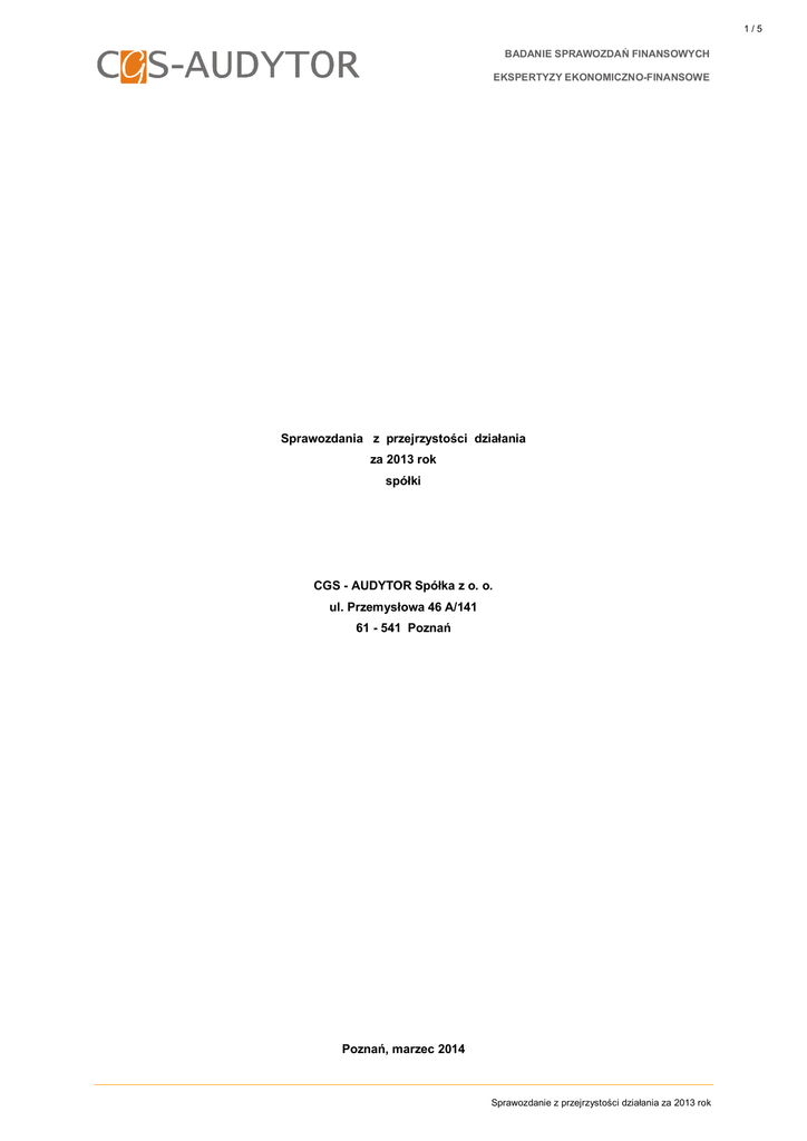 Sprawozdania z przejrzystości działania za 2013 rok spółki CGS