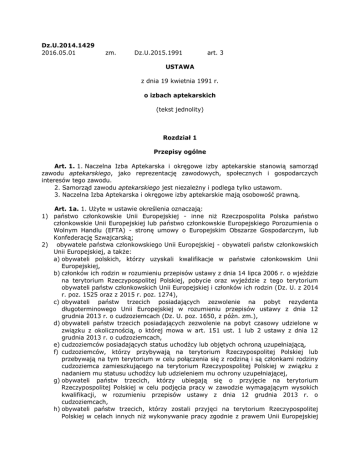 Art. 1. 1. Naczelna Izba Aptekarska i okręgowe izby aptekarskie stanowią samorząd
