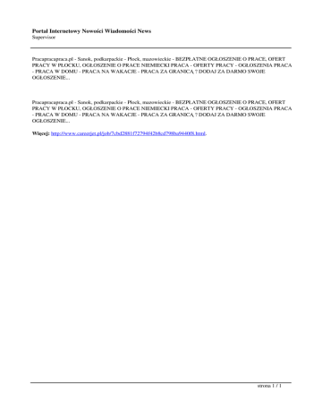 Portal Internetowy Nowości Wiadomości News Supervisor Pracapracapraca.pl - Sanok, podkarpackie - Płock, mazowieckie - BEZPŁATNE OGŁOSZENIE O PRACE, OFERT PRACY W PŁOCKU, OGŁOSZENIE O PRACE NIEMIECKI PRACA - OFERTY PRACY - OGŁOSZENIA PRACA - PRACA W DOMU - PRACA NA WAKACJE - PRACA ZA GRANICĄ ? DODAJ ZA DARMO SWOJE OGŁOSZENIE... Pracapracapraca.pl - Sanok, podkarpackie - Płock, mazowieckie - BEZPŁATNE OGŁOSZENIE O PRACE, OFERT PRACY W PŁOCKU, OGŁOSZENIE O PRACE NIEMIECKI PRACA - OFERTY PRACY - OGŁOSZENIA PRACA - PRACA W DOMU - PRACA NA WAKACJE - PRACA ZA GRANICĄ ? DODAJ ZA DARMO SWOJE OGŁOSZENIE... Więcej: http://www.careerjet.pl/job/7cbd2881f72794f42b8cd798ba9440f8.html. strona 1 / 1
