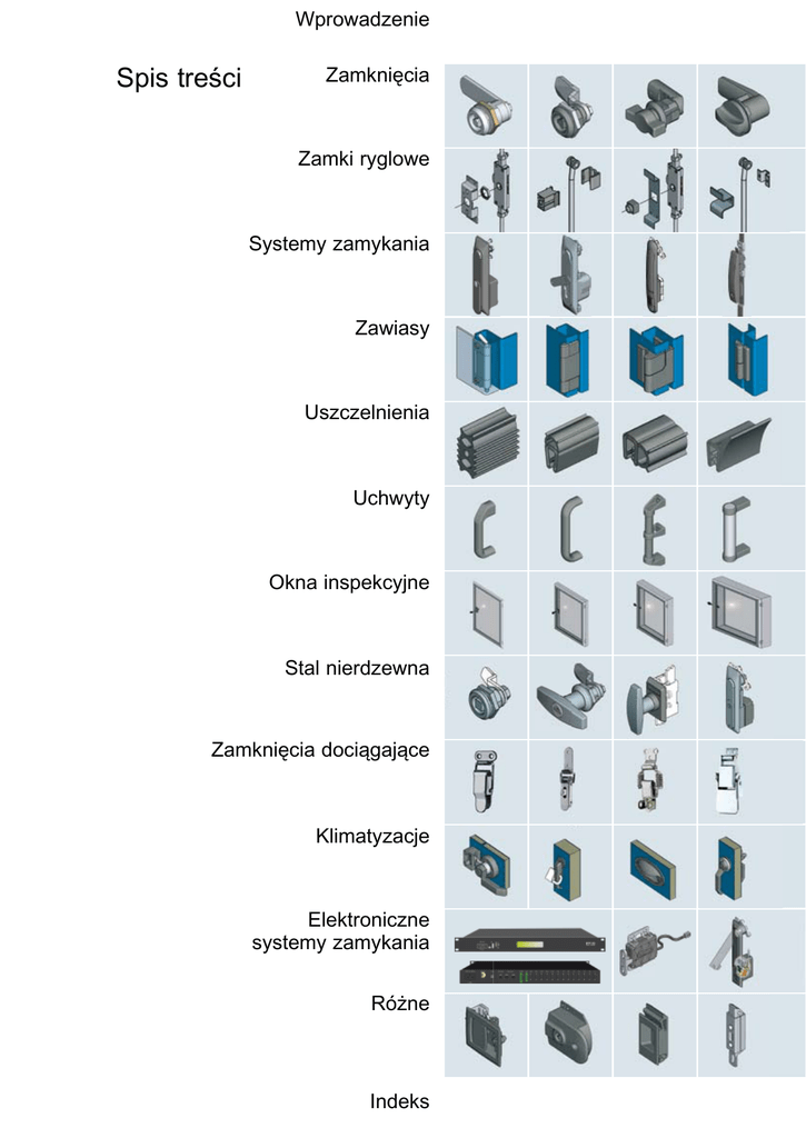 Wprowadzenie Spis treści Zamknięcia Zamki ryglowe Systemy zamykania Zawiasy Uszczelnienia Uchwyty Okna inspekcyjne Stal nierdzewna Zamknięcia dociągające Klimatyzacje Elektroniczne systemy zamykania Różne Indeks EMKA światowy zasięg Produkty/podziały Wykończenie od A do Z Piktogramy / wyszukiwanie online Zamknięcia Przegląd : 1-100 Zamknięcia, małe i średnie wersje (PROGRAM 1012, 1022) Zamknięcia, duże wersje (PROGRAM 1000) Wyposażenie: Języki, osłony przeciwpyłowe, pręty, prowadnice Zamek zatrzaskowy (program 1500) Zamek, różne zamknięcia 1A . . . . . . . . . . . . . 1B . . . . . . . . . . . . . 1C . . . . . . . . . . . . . 1D . . . . . . . . . . . . . 1E . . . . . . . . . . . . . Zamki ryglowe 2A . . . . . . . . . . . . . Zamki ryglowe do dużych obciążeń, przykręcane 2B . . . . . . . . . . . . . Zamki ryglowe dla dużych obciążeń, do przyspawania Systemy zamykania Przegląd programów, prezentacja: 3-100 3A do 3N. . . . . . . . 3XA do 3XC . . . . . 3YA do 3YC . . . . . 3ZA do 3ZC . . . . . 1107 do 3000 Środki zamykające: moduły, wkładki bębenkowe Zamki ryglowe, tulejki łożyskowe, języki Rygle stosowane na zewnątrz i wewnątrz; prowadnice Przegląd, prezentacja: 4-100 4A . . . . . . . . . . . . . Zawiasy do drzwi przylegających 4B . . . . . . . . . . . . . Zawiasy do drzwi wewnętrznych 4C . . . . . . . . . . . . . Zawiasy sworzniowe Zawiasy Uszczelnienia 5A . . . . . . . . . . . . . Uszczelki, gumy komórkowe, osłony krawędzi, kształtki łączące 5B . . . . . . . . . . . . . Uszczelki wg wytycznej VDI 6022 5C . . . . . . . . . . . . . Uszczelki zamknięć elektromagnetycznych Uchwyty 6A . . . . . . . . . . . . . Uchwyty: pałąkowe, składane, rogowe, rurowe, chwyty (PROGRAM 1095) 6B . . . . . . . . . . . . . Uchwyty składane, uchwyty ze sprężyną (PROGRAM 6040) Okna inspekcyjne 7A . . . . . . . . . . . . . Okna inspekcyjne z lub bez ramy (PROGRAM 1200) 7B . . . . . . . . . . . . . EMKA PROflex: okna inspekcyjne z lub bez ramy, zmontowane lub w częściach (PROGRAM 1210) 7C . . . . . . . . . . . . . Drzwi kompletne (PROGRAM 1300) Stal nierdzewna 8A . . . . . . . . . . . . . Zamknięcia: zamki, szyldziki zamka, klamki odchylane, rygle 8B . . . . . . . . . . . . . Zawiasy do drzwi przylegających lub wewnętrznych 8C . . . . . . . . . . . . . Różne: Uchwyty, podpora klapy, blokada drzwi Zamknięcia dociągające 9A . . . . . . . . . . . . . Zamknięcia dociągające z jarzmem, z jarzmem napinającym i zabezpieczeniem, ze sprężyną, zamknięcia dociągające regulowane, haki (PROGRAM 6000) Klimatyzacje 10A . . . . . . . . . . . . Zamknięcia dźwigniowe, dociągające - obrotowe; korytka, zawiasy 180° (PROGRAM 1091) EMKA Electronics 11A . . . . . . . . . . . . ELM Security System: rozwiązania sieciowe, panele 19“, moduły, klawiatury, uchwyty ze zintegrowaną klawiaturą, czujniki, akcesoria 11B . . . . . . . . . . . . Rozwiązania Stand-alone 11C . . . . . . . . . . . . Biometryczne systemy kontroli dostępu Różne 12A . . . . . . . . . . . . 12B . . . . . . . . . . . . 12C . . . . . . . . . . . . 12D . . . . . . . . . . . . 12E . . . . . . . . . . . . Indeks Zamknięcia:uchwyty składane,zamki skrzynkowe,zapadkowe;uchwyty Klucze Podpory i podtrzymywacze drzwi, ograniczniki, teleskopowa podpora pokrywy Akcesoria: uchwyty, uchwyty kablowe, kieszenie na dokumenty, okna wizyjne Elementy mocujące Numer artykułu / strona katalogu EMKA światowy zasięg Info Wprowadzenie
