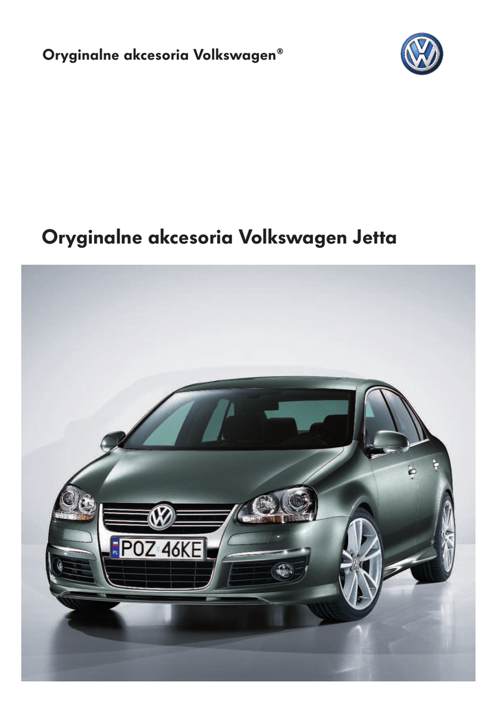 Oryginalne akcesoria Volkswagen® Oryginalne akcesoria Volkswagen Jetta Postęp jest fascynujący. Niewiele jest tematów, które tak bardzo pasjonują ludzkość. Oryginalne akcesoria Volkswagen® to spełnienie marzeń o indywidualności i wolności użytkowników VW. Oryginalne akcesoria Volkswagen® Oryginalne akcesoria Volkswagen® spełniają wymagania marki. Zanim nowy samochód pojawi się na rynku, konstruktorzy równolegle rozwijają, testują i w rezultacie zatwierdzają ofertę najlepszych akcesoriów. Volkswagen Individual Volkswagen Individual to innowacyjne technologie, wysokiej jakości materiały, przemyślane detale i kunsztowne wykonanie. To indywidualny i ekskluzywny charakter VW Jetta. Najwyższa jakość i maksymalna funkcjonalność to najważniejsze cechy oryginalnych akcesoriów. Partnerzy marki Volkswagen udzielą informacji na temat szerokiej oferty Oryginalnych akcesoriów Volkswagen® . 4 Sport i design elementy tuningowe, nakładki na pedały, listwa ozdobna 8 Felgi i koła felgi aluminiowe, kompletne koła, łańcuchy śniegowe, zabezpieczenia kół, pokrowce na opony Komunikacja 14 multimedia, systemy nawigacji, MEDIA-IN, adapter iPod, etui na CD, zmieniarka płyt, zestawy głośnomówiące Transport 20 systemy transportowe, haki holownicze, foteliki dziecięce Komfort i ochrona 26 dywaniki samochodowe, czujnik parkowania, tempomat, podstawa bagażnika, rolety przeciwsłoneczne, chlapacze, listwy ochronne Pielęgnacja i bezpieczeństwo 30 kosmetyki samochodowe, trójkąt ostrzegawczy, kamizelka ostrzegawcza, apteczka samochodowa Lifestyle 31 modele, brelok do kluczy, parasol, walizki Przedstawione w katalogu samochody zostały częściowo wyposażone w dodatkowe akcesoria. Podobnie jak pewne elementy dekoracyjne, nie są one dostępne wraz z opisanym produktem. Piękny i silny. Volkswagen Jetta ma wielu fanów Chcesz podkreślić elegancję Twojej Jetty, efektowny wygląd, a może sportowe osiągi? Wybierz do tego odpowiednie Oryginalne akcesoria Volkswagen®. Masz gwarancję, że inni się za Tobą obejrzą. Sport i design Oryginalne akcesoria Volkswagen® Spoiler przedni Mocny akcent. Wysokiej jakości aerodynamiczny spoiler przedni, wykonany z odpornego na pęknięcia tworzywa, nadaje silny, sportowy charakter. Art. nr: 1KM 071 609 9AX Oryginalne akcesoria Volkswagen® Komplet spoilerów progowych Oryginalne akcesoria Volkswagen® Zestaw dekoracyjny (ilustracja po lewej) Zestaw dekoracyjny wykonany z wysokiej jakości Sportowa, idealnie dopasowana do samochodu linia tworzywa odpornego na zarysowania oraz stwarza optyczne wrażenie niskiego zawieszenia. promieniowanie UV. Przeznaczony do przyklejenia Doskonałe uzupełnienie elementów tuningu. na słupku B. Łatwy w montażu. Dostępny w dwóch Montaż nie wymaga dodatkowych wierceń. wersjach: grafitowy oraz matowane aluminium. Art. nr: 1KM 071 685 9AX Art. nr: 1K9 071 350 A Art. nr: 1K9 071 350 B Oryginalne akcesoria Volkswagen® Nakładki na pedały Wykonane z wysokiej jakości stali z wkładką antypoślizgową. Art. nr: 1K1 064 200 Art. nr: 1K1 064 205 z manualną skrzynią biegów z automatyczną skrzynią biegów i DSG grafitowy matowane aluminium 4 5 Oryginalne akcesoria Volkswagen® Spoiler tylny Doskonale uzupełnia dynamiczny profil VW Jetta. Wykonany z wysokiej jakości tworzywa. Art. nr: 1KM 071 610 9AX Oryginalne akcesoria Volkswagen® Dyfuzor spoilera tylnego Wyraźnie podkreśla optykę spoilera oraz nadaje sportowy wygląd. Stwarza optyczne wrażenie niskiego zawieszenia. Art. nr: 1KM 071 611 9AX Art. nr: 1KM 071 611 A 9AX samochody z niewidoczną końcówką rury wydechowej (ilustracja poniżej) samochody z widoczną końcówką rury wydechowej (bez ilustracji) Sport i design Oryginalne akcesoria Volkswagen® Spoiler na krawędź klapy bagażnika Subtelny, ale efektywny 3-częściowy spoiler stanowi eleganckie wykończenie. Odpowiedni kształt spoilera wyzwala korzystne siły aerodynamiczne na tylnej osi, co wyraźnie poprawia stabilność jazdy. Art. nr: 1KM 071 640 9AX Oryginalne akcesoria Volkswagen® Spoiler na klapę bagażnika Nie tylko nadaje dynamiczny wygląd, lecz również optymalizuje aerodynamiczne własności VW Jetta. Idealnie dopasowany do samochodu. Art. nr: 1KM 071 646 9AX Oryginalne akcesoria Volkswagen® Listwa ozdobna Naklejana na dolny brzeg pokrywy bagażnika, stanowi atrakcyjne wykończenie. Art. nr: 1KM 071 360 6 7 Piękno podróżowania Każdy modny strój potrzebuje odpowiedniego obuwia. Dopasuj do pięknej sylwetki Jetty zestaw eleganckich felg aluminiowych lub stylowych kół. Oryginalne akcesoria Volkswagen® podkreślają indywidualny wygląd samochodu. Felgi i koła Oryginalne akcesoria Volkswagen® Felga aluminiowa „Vision” Oryginalne akcesoria Volkswagen® Felga aluminiowa „Vision” (ilustracja po lewej) (ilustracja po prawej) Wielkość felgi: 8 J x 18", ET 50, LK 5/112. Wielkość felgi: 8 J x 18", ET 50, LK 5/112. Wielkość opony1: 225/40 R18. Wielkość opony1: 225/40 R18. Kolor: srebrny Sterling, polerowana. Kolor: srebrno-czarny. Art. nr: 1K5 071 498 1ZL1, 2, 3 Art. nr: 1K5 071 498 0411, 2, 3 Wielkość felgi: 7 J x 17", ET 54, LK 5/112. Wielkość felgi: 7 J x 17", ET 54, LK 5/112. Wielkość opony: 225/45 R17. Wielkość opony1: 225/45 R17. Kolor: srebrny Sterling, polerowana. Kolor: srebrno-czarny. Art. nr: 1K5 071 497 1ZL Art. nr: 1K5 071 497 041 Kolor: srebrny Sterling. Art. nr: 1K5 071 497 666 8 9 Oryginalne akcesoria Volkswagen® Felga aluminiowa „Karthoum” Oryginalne akcesoria Volkswagen® Felga aluminiowa „Karthoum” Wielkość felgi: 8 J x 18", ET 50, LK 5/112. Wielkość felgi: 8 J x 18", ET 50, LK 5/112. Oryginalne akcesoria Volkswagen® Felga aluminiowa „Karthoum” Wielkość opony: 225/40 R18. Wielkość opony: 225/40 R18. Wielkość felgi: 8 J x 18", Kolor: srebrny Sterling. Kolor: tytanowy. ET 50, LK 5/112. Art. nr: 1K0 071 498 1ZL Art. nr: 1K0 071 498 V7U 1, 2, 3 1, 2, 3 Wielkość opony: 225/40 R18. Kolor: czar