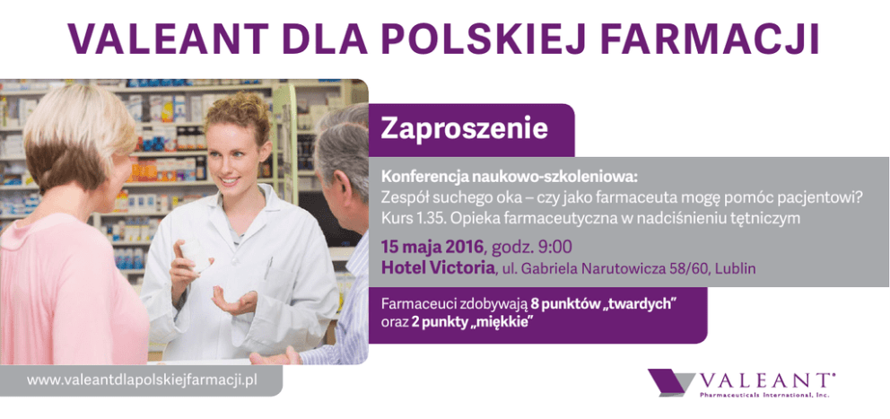 VALEANT DLA POLSKIEJ FARMACJI Zaproszenie Konferencja naukowo-szkoleniowa: Zespół suchego oka – czy jako farmaceuta mogę pomóc pacjentowi? Kurs 1.35. Opieka farmaceutyczna w nadciśnieniu tętniczym 15 maja 2016, godz. 9:00 Hotel Victoria, ul. Gabriela Narutowicza 58/60, Lublin Farmaceuci zdobywają 8 punktów „twardych” oraz 2 punkty „miękkie” www.valeantdlapolskiejfarmacji.pl PROGRAM KURSU 8.00-9.00Rejestracja uczestników 9.00-9.15Rozpoczęcie i powitanie uczestników 9.15-10.15Zespół suchego oka – czy jako farmaceuta mogę pomóc pacjentowi? 10.15-10.30 Przerwa od 10.30 Kurs 1.35. Opieka farmaceutyczna w nadciśnieniu tętniczym 1. Procedury ratunkowe u chorego z krytycznym wzrostem ciśnienia, ryzykiem udaru mózgu, udarem – część I i II 2. Epidemiologia, diagnostyka, wiedza ogólna o nadciśnieniu tętniczym 3. Plan opieki farmaceutycznej i prowadzenie dokumentacji opieki farmaceutycznej dla pacjenta z nadciśnieniem tętniczym 4. Powikłania nadciśnienia tętniczego 5. Farmakoterapia i ustalanie celów terapeutycznych w nadciśnieniu tętniczym 6. Wykrywanie i rozwiązywanie problemów lekowych związanych z nadciśnieniem tętniczym 7. Edukacja i monitorowanie stanu zdrowia pacjenta z nadciśnieniem tętniczym 17.00 Dyskusja, podsumowanie, zakończenie kursu szkoleniowego, test INFORMACJE ORGANIZACYJNE KURS JEST BEZPŁATNY Farmaceuci zdobywają 8 punktów edukacyjnych „twardych” (po zaliczeniu testu sprawdzającego) przyznanych przez Gdański Uniwersytet Medyczny oraz 2 punkty edukacyjne „miękkie” przyznane przez Lubelską Okręgową Izbę Aptekarską. www.valeantdlapolskiejfarmacji.pl POTWIERDZENIE OBECNOŚCI Prosimy o potwierdzenie swojej obecności na www.valeantdlapolskiejfarmacji.pl, wysyłając e-mail na adres [email protected] lub pod numerem tel. 514 553 039 w godzinach 9:00 -17:00. ORGANIZATOR: GRANT EDUKACYJNY: WSPÓŁORGANIZATOR: KOMITET NAUKOWY KIEROWNIK NAUKOWY: PROF. DR HAB. N. MED. ARTUR MAMCARZ Kierownik III Kliniki Chorób Wewnętrznych i Kardiologii WUM. Autor wielu prac oryginalnych, poglądowych i rozdziałów w podręcznikach. Znany, ceniony i lubiany wykładowca. Obszar zainteresowań klinicznych, naukowych i dydaktycznych to m.in. nieinwazyjna diagnostyka kardiologiczna, farmakologia kliniczna, kardiodiabetologia, kardiologia sportowa. Zan-PL-1601-261 WYKŁADOWCY: DR HAB. N. FARM. PIOTR KOWALSKI Prof. nadzw. Gdańskiego Uniwersytetu Medycznego, pracujący w Katedrze i Zakładzie Chemii Farmaceutycznej. Kierownik Ośrodka Szkolenia Podyplomowego Wydziału Farmaceutycznego z OML GUMed. Od 2008 r. prezes Oddziału Polskiego Towarzystwa Farmaceutycznego w Gdańsku. Przez 24 lata pracował w aptece ogólnodostępnej w Gdyni. Członek Komisji Egzaminacyjnej CEM ze specjalizacji farmacja apteczna. DR N. MED. MAREK CHMIELEWSKI Adiunkt w Katedrze i Klinice Katedry Kardiologii, Nadciśnienia Tętniczego i Chorób Wewnętrznych Warszawskiego Uniwersytetu Medycznego. Kierownik Pracowni Hemodynamiki w Mazowieckim Szpitalu Wojewódzkim. Nauczyciel akademicki z wieloletnim doświadczeniem dydaktycznym. DR N. MED. MACIEJ JANISZEWSKI Kierownik Zakładu Niewydolności Serca i Rehabilitacji Kardiologicznej Warszawskiego Uniwersytetu Medycznego. Nauczyciel akademicki z kilkunastoletnim doświadczeniem dydaktycznym zarówno w zakresie nauczania studentów, jak i edukacji podyplomowej. LEK. MED. MARCIN WEŁNICKI Specjalista chorób wewnętrznych, pracownik III Kliniki Chorób Wewnętrznych i Kardiologii Warszawskiego Uniwersytetu Medycznego. Uczestnik Studiów Doktoranckich Drugiego Wydziału Lekarskiego WUM. Stały współpracownik gazety „Służba Zdrowia” (dział kliniczny i naukowy). Wykładowca w wielu cyklach szkoleń przeznaczonych dla farmaceutów. DR N. MED. DANIEL ŚLIŻ Specjalista chorób wewnętrznych, specjalizant w zakresie zdrowia publicznego, adiunkt w III Klinice Chorób Wewnętrznych i Kardiologii Warszawskiego Uniwersytetu Medycznego, członek zarządu Sekcji Prewencji i Epidemiologii Polskiego Towarzystwa Kardiologicznego, członek komisji rewizyjnej Kardiologii Sportowej Polskiego Towarzystwa Kardiologicznego, nauczyciel akademicki. W ramach działalności edukacyjnej wielokrotnie prowadził wykłady dla pacjentów, studentów medycyny, lekarzy oraz farmaceutów. Fascynat medycyny, stylu życia. DR N. MED. AGNIESZKA WSÓŁ Specjalista chorób wewnętrznych, specjalizantka w zakresie kardiologii, adiunkt w Zakładzie Fizjologii Doświadczalnej i Klinicznej Warszawskiego Uniwersytetu Medycznego, członek elitarnego „Klubu 30” Polskiego Towarzystwa Kardiologicznego, wieloletni nauczyciel akademicki. Doświadczenie w szkoleniach edukacyjnych kierowanych dla lekarzy i farmaceutów. DR BEATA RYMGAYŁŁOJANKOWSKA Specjalista chorób oczu z Katedry i Kliniki Okulistyki Uniwersytetu Medycznego w Lublinie, gdzie jest adiunktem. Specjalizuje się w leczeniu rogówki i przedniej części oka. Na co dzień wykonuje także badania diagnostyczne i zabiegi laserowe w specjalistycznych placówkach.