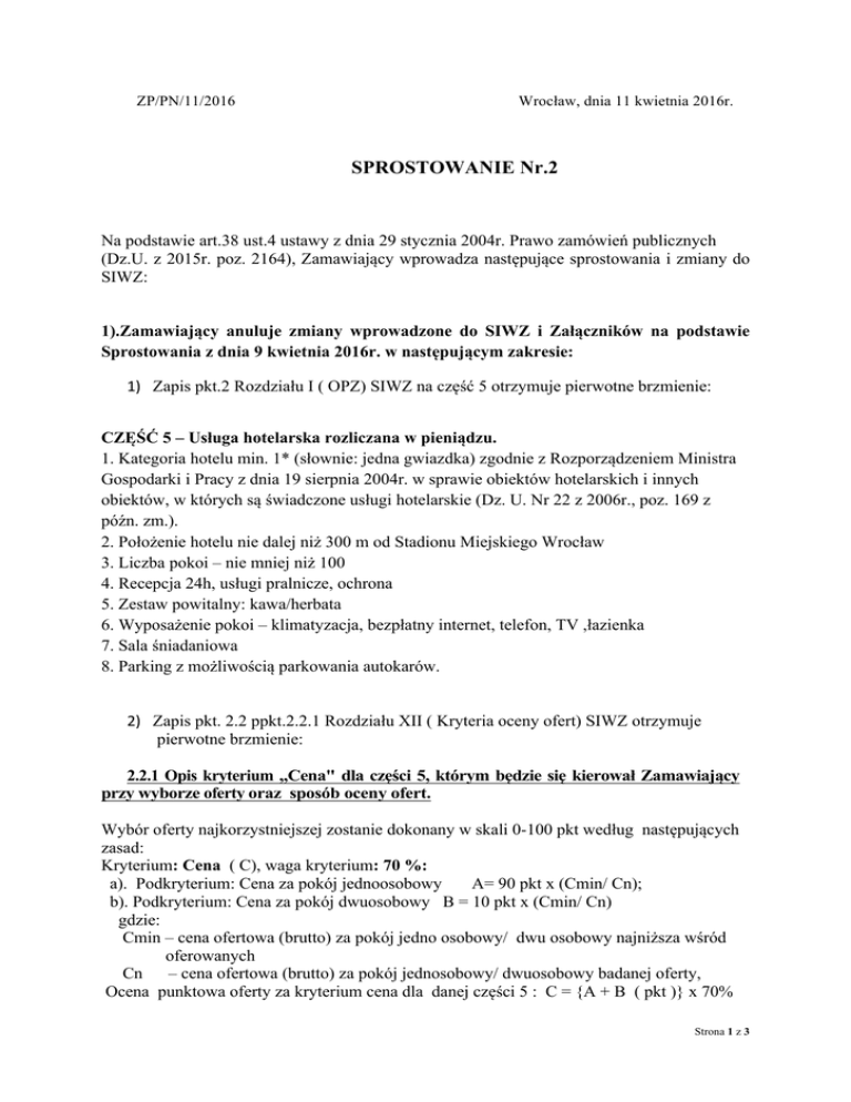 Wrocław, dnia 11 kwietnia 2016r.