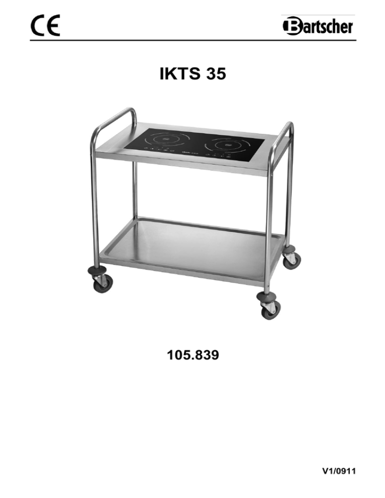 IKTS 35 105.839 V1/0911 PL 1. Informacje ogólne 1.1 Informacje dotyczące instrukcji obsługi 1.2 Wyjaśnienie symboli 1.3 Odpowiedzialność producenta i gwarancja 1.4 Ochrona praw autorskich 1.5 Deklaracja Zgodności 182 182 182 183 183 183 2. Bezpieczeństwo 2.1 Informacje ogólne 2.2 Wskazówki dotyczące bezpieczeństwa przy zastosowaniach urządzenia 2.3 Użytkowanie zgodnie z przeznaczeniem 184 184 184-185 185 3. Transport, opakowanie i magazynowanie 3.1 Kontrola dostawy 3.2 Opakowanie 3.3 Magazynowanie 186 186 186 186 4. Parametry techniczne 187 5. Instalacja i obsługa urządzenia 5.1 Sposób działania indukcyjnych stref grzewczych 5.2 Wskazówki dotyczące bezpieczeństwa 5.3 Naczynia odpowiednie i nieodpowiednie 5.4 Ustawienie i podłączenie urządzenia 5.5 Obsługa 188 188 188-190 190-191 191-193 193-196 6. Czyszczenie i konserwacja 6.1 Wskazówki dotyczące bezpieczeństwa 6.2 Czyszczenie 6.3 Wskazówki dotyczące bezpieczeństwa podczas konserwacji 196 196 196-197 197 7. Możliwe usterki 197-198 8. Utylizacja Bartscher GmbH Franz-Kleine-Straße 28 D-33154 Salzkotten Niemcy 198 Tel.: +49 (0) 5258 971-0 Faks: +49 (0) 5258 971-120 - 181 - 1. Informacje ogólne 1.1 Informacje dotyczące instrukcji obsługi Niniejsza instrukcja obsługi zawiera opis instalacji urządzenia, jego obsługi oraz konserwacji i służy jako ważne źródło informacji oraz poradnik. Znajomość i przestrzeganie wszystkich zawartych w niej wskazówek dotyczących bezpieczeństwa i obsługi stanowi warunek bezpiecznej i prawidłowej pracy z urządzeniem. Ponadto należy przestrzegać lokalnych przepisów dotyczących zapobiegania wypadkom oraz zasad BHP. Instrukcja obsługi stanowi integralny element urządzenia i należy ją przechowywać w pobliżu urządzenia, aby osoby instalujące urządzenie, prowadzące prace konserwacyjne i obsługujące lub czyszczące urządzenie miały do niej stały dostęp. 1.2 Wyjaśnienie symboli Ważne wskazówki dotyczące bezpieczeństwa oraz kwestii technicznych oznaczono w niniejszej instrukcji obsługi odpowiednimi symbolami. Wskazówek tych należy bezwzględnie przestrzegać, aby uniknąć ewentualnych wypadków, uszczerbku na życiu i zdrowiu osób oraz szkód rzeczowych. UWAGA! Symbol ten oznacza zagrożenia mogące prowadzić do powstania obrażeń ciała. Należy bezwzględnie i skrupulatnie przestrzegać niniejszych wskazówek BHP, a w odpowiednich sytuacjach zachować szczególną ostrożność. NIEBEZPIECZEŃSTWO! Zagrożenie prądem elektrycznym! Symbol ten zwraca uwagę na zagrożenia prądem elektrycznym. Ignorowanie wskazówek dotyczących bezpieczeństwa stwarza niebezpieczeństwo odniesienia obrażeń ciała lub utraty życia. OSTRZEŻENIE! Tym symbolem oznaczono wskazówki, których ignorowanie może, w konsekwencji, doprowadzić do uszkodzenia urządzenia, jego nieprawidłowego działania lub / i awarii. WSKAZÓWKA! Ten symbol wskazuje na porady oraz informacje istotne dla efektywnej i bezawaryjnej pracy urządzenia. OSTRZEŻENIE! Gorąca powierzchnia zewnętrzna! Symbol ostrzega przed gorącą powierzchnią urządzenia podczas jego pracy. Lekceważenie ostrzeżenia grosi poparzeniem! - 182 - 1.3 Odpowiedzialność producenta i gwarancja Wszystkie informacje zawarte w niniejszej instrukcji obsługi zostały zestawione przy uwzględnieniu obowiązujących przepisów, aktualnej wiedzy konstruktorskiej i inżynierskiej oraz naszej wiedzy, a także naszych wieloletnich doświadczeń. Również tłumaczenia instrukcji obsługi zostały wykonane jak najbardziej rzetelnie. Nie możemy jednak przejąć odpowiedzialności za ewentualne błędy w tłumaczeniu. Wersją rozstrzygającą jest załączona instrukcja obsługi w języku niemieckim. W przypadku zamówienia modeli specjalnych lub opcji dodatkowych, oraz w sytuacji zastosowania najnowszych zdobyczy wiedzy technicznej, dostarczone urządzenie może różnić się od objaśnień oraz rysunków zawartych w niniejszej instrukcji obsługi. W razie wątpliwości prosimy o kontakt z producentem. WSKAZÓWKA! Przed rozpoczęciem jakichkolwiek prac, a w szczególności przed uruchomieniem urządzenia, należy dokładnie zapoznać się z treścią niniejszej instrukcji obsługi. Producent nie odpowiada za szkody i uszkodzenia powstałe wskutek nieprzestrzegania informacji zawartych w instrukcji obsługi. Instrukcję obsługi należy przechowywać bezpośrednio przy urządzeniu; ponadto musi być ona dostępna dla wszystkich osób pracujących z urządzeniem. Zastrzegamy sobie prawo do wprowadzania zmian technicznych w produkcie, służących poprawie właściwości użytkowych urządzenia oraz jego ulepszaniu. 1.4 Ochrona praw autorskich Niniejsza instrukcja obsługi oraz zawarte w niej teksty, rysunki, zdjęcia i inne elementy podlegają ochronie prawem autorskim. Bez uzyskania pisemnej zgody producenta, zabrania się powielania treści instrukcji obsługi w jakiejkolwiek formie i w jakikolwiek sposób (także fragmentów), oraz wykorzystywania lub / i przekazywania jej zawartości osobom trzecim. Naruszenia powyższego skutkują obowiązkiem wypłaty odszkodowania. Zastrzegamy sobie prawo do dochodzenia dalszych roszczeń. WSKAZÓWKA! Dane, teksty, rysunki, zdjęcia i inne opisy zawarte w niniejszej instrukcji, podlegają ochronie prawem autorskim oraz prawem ochrony własności przemysłowej. Każde nadużycie w jej wykorzystaniu jest karalne. 1.5 Deklaracja Zgodności Urządzenie spełnia aktualnie obowiązujące normy oraz wytyczne Unii Europejskiej. Powyższe potwierdzamy w Deklaracji Zgodności WE. W razie potrzeby chętnie prześlemy Państwu odpowiednią Deklarację Zgodności. - 183 - 2. Bezpieczeństwo Niniejszy rozdział zawiera zarys informacji, dotyczących wszystkich istotnych aspektów związanych z bezpieczeństwem. Ponadto poszczególne rozdziały zawierają konkretne wskazówki (oznaczone symbolami), dotyczące bezpieczeństwa i mające zapobiegać powstawaniu zagrożeń. Należy także prz