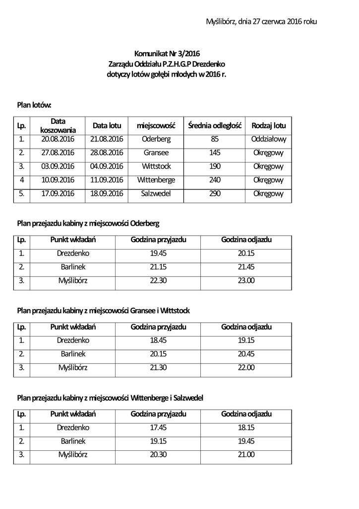 Myślibórz, dnia 27 czerwca 2016 roku Komunikat