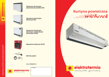 Ogrzewacze akumulacyjne powierzchniowo-kanałowe KOA Kurtyna powietrzna Ogrzewacze akumulacyjne dynamiczne DOA ul. Mackiewicza 5, 31-214 Kraków, tel. (12) 4157522, 4157523, fax (12) 4154240 http://www.elektrotermia.com.pl, e-mail:[email protected] Ogrzewacze akumulacyjne dynamiczne z elektronicznym sterownikiem DOA/E Nagrzewnice elektryczne HALNY Elementy grzejne Folder: WRZESIEŃ 2013 DYSTRYBUTOR Elektryczna kurtyna powietrzna Elektryczna kurtyna powietrzna serii X3 i X6 Kurtyna powietrzna serii EKP WICHEREK jest urządzeniem pozwalającym zabezpieczyć niekontrolowany przepływ powietrza pomiędzy dwoma strefami o różnych temperaturach. Ogranicza ona straty ciepła w pomieszczeniach ogrzewanych oraz utrate powietrza klimatyzowanego w okresie letnim (do tych celów stosuje się kurtyny tzw. zimne). Dzięki temu można zaoszczędzić znaczne ilości energii cieplnej, a w rezultacie obniżyć koszty eksploatacji systemów grzejnych. Zalety kurtyny: • GWARA A Panele sterujące: Natynkowy/Podtynkowy Regulator temperatury Przepływ powietrza: Programator tygodniowy Dodatkowe zalety to zapobieganie przeciągom, ochrona przed owadami i spalinami. Kurtyny EKP posiadają możliwość sterowania mocą grzewczą, prędkością wentylatora oraz temperatury powietrza w pomieszczeniu. Regulacja ta jest realizowana za pomocą dodatkowego panela sterującego i termostatu (możliwość umieszczenia w dowolnym miejscu) lub w przypadku kurtyn kompaktowych regulacja odbywa się za pomocą przełączników umieszczonych na kurtynie. Urządzenia są przystosowane do montażu zarówno na ścianie jak i do sufitu (śruba M8). Połączenie w szereg kilku kurtyn pozwala zabezpieczyć drzwi o dowolnej szerokości. Kurtyny EKP charakteryzują się niskim poziomem głośności. 15 0 cm 0,00 m 5,20 m/s 5,50 m/s 1,00 m 3,00 m/s 3,30 m/s Budowa kurtyny 2 1 EKP 106 EKP 159 - 2/3 kW 4/6 kW 6/9 kW 230V~/N/PE 230V~/N/PE 3 x 400V~/N/PE 3 x 400V~/N/PE - 6x500W/230V~ 9x670W/230V~ 9x1kW/230V~ 145W 145W 145W 140W 1300 m3/h 1200 m3/h 1200 m3/h 1600 m3/h 990 x 230 x 260 990 x 230 x 260 990 x 230 x 260 1400 x 250 x 260 Masa całkowita [kg] 21,5 22,5 23 26,5 Stopień ochrony zapewniany przez obudowę IP21 IP21 IP21 IP21 klasa I klasa I klasa I klasa I - 11/15°C 15/25°C 23/27°C 53 53 53 52 zimna, 230V sterowanie moc 2,0/3,0kW/ 230V, sterowanie moc 4,0/6,0kW/ 400V, sterowanie moc 6,0/9,0kW/ 400V, sterowanie 1 260 zł (netto) 1 550 zł (brutto) 1 382 zł (netto) 1 700 zł (brutto) 1 464 zł (netto) 1 800 zł (brutto) 2 114 zł (netto) 2 600 zł (brutto) Napięcie znamionowe Liczba i moc elementów grzejnych Moc wentylatora Maksymalna ilość powietrza Wymiary (szer. x wys. x głęb. [mm]) Sposób zabezpieczenia przed porażeniem prądem elektrycznym Stopień podniesienia temperatury (I stopień mocy / II stopień mocy) Poziom głośności dB(A) Parametr CENA Opcjonalnie - zewnętrzny regulator temperatury Ceny obowiązują dla kurtyn w kolorze białym Kurtyny ze stali nierdzewnej INOX1 - dopłata 15% 1 Na indywidualne zamówienie, termin realizacji około 4 tygodnie ANCJA • AR 12 m i e się 2,40 m/s 2,50 m/s EKP 103 Moc znamionowa (podział mocy) 3 • GWARA A 2,00 m EKP 1001 MODEL Sposób montażu sufitowego i naściennego ARANC J GW ul. Mackiewicza 5, 31-214 Kraków, tel. (12) 4157522, 4157523, fax (12) 4154240 http://www.elektrotermia.com.pl, e-mail:[email protected] 100 cm cy cy m i e si ę JA • GW NC 36 ARANC J GW JA • GW NC ANCJA • AR Nowa kurtyna powietrzna EKP X należy do serii małych kurtyn powietrznych zapewniających idealne rozwiązanie, jako bariera ochronna przy wejściu do małych obiektów, kiosków, niewielkich sklepów itp. Kurtyna powietrzna typoszeregu EKP X charakteryzuje sie prostą i wygodną obsługą. Przeznaczona jest do montażu nad drzwiami na wysokości powyżej 1.8 m, nie przekraczającej 2.3 m. Kurtyna zabezpiecza wejście do budynku przed zimnym powietrzem zimą oraz zabezpiecza przed utrata powietrza klimatyzowanego latem. Zastosowanie kurtyny pozwala zminimalizować straty ciepła, co wpływa zarówno na koszty eksploatacji obiektu jak i komfort pracy. Dodatkową zaletą jest możliwość łączenia kurtyn w zestawy o dowolnej długości, montując je obok siebie. Dzięki zasysaniu powietrza od przodu kurtyny, istnieje możliwość ich montażu w niskich pomieszczeniach zaraz pod sufitem lub w przestrzeni miedzystropowej. Obudowa kurtyny X3 i X6 pokryta jest powłoką lakierniczą, nakładaną technologią proszkową, co zapewnia dużą wytrzymałość mechaniczną oraz odporność na wysoką temperaturę. Do kurtyn wymagany jest panel wewnętrzny lub zewnętrzny (podział mocy oraz wydaj. wentylat.). Panel zewnętrzny cena: 122 zł (netto), 150 zł (brutto). Panel wewnętrzny cena: 122 zł (netto), 150 zł (brutto). 1 - Przełącznik załączenia i wyłączenia wentylatora 2 - Przełacznik załączenia połowy mocy grzejnej 3 - Przełacznik załączenia pełnej mocy grzejnej EKP X3 EKP X6 1500 / 3000 W 3000 / 6000 W 230V~/N/PE 2 x 230V~/N/PE 4 x 750 W 8 x 750W/230V~ 38 W 45W 300 m /h 600 m3/h 600 x 110 x 200 980 x 250 x 200 Masa całkowita [kg] 5,9 12 Stopień ochrony zapewniany przez obudowę IP21 IP21 klasa I klasa I 14 / 27 °C 14 / 27 °C 53 53 463zł (netto) 570 zł (brutto) 610 zł (netto) 750 zł (brutto) MODEL Moc znamionowa (podział mocy) Napięcie znamionowe Liczba i moc elementów grzejnych Moc wentylatora Maksymalna ilość powietrza Wymiary (szer. x wys. x głęb. [mm]) Sposób zabezpieczenia przed porażeniem prądem elektrycznym Stopień podniesienia temperatury (I stopień mocy / II stopień mocy) Poziom głośności dB(A) CENA 3 ul. Mackiewicza 5, 31-214 Kraków, tel. (12) 4157522, 4157523, fax (12) 4154240 http://www.elektrotermia.com.pl, e-mail:[email protected] chronią przed owadami, zapyleniem, spalinami zapobiegają przeciągom dają wolne, nieblokowane wejście polepszają środowisko pracy personelu podwyższają komfort i standard obiektu obniżają koszt