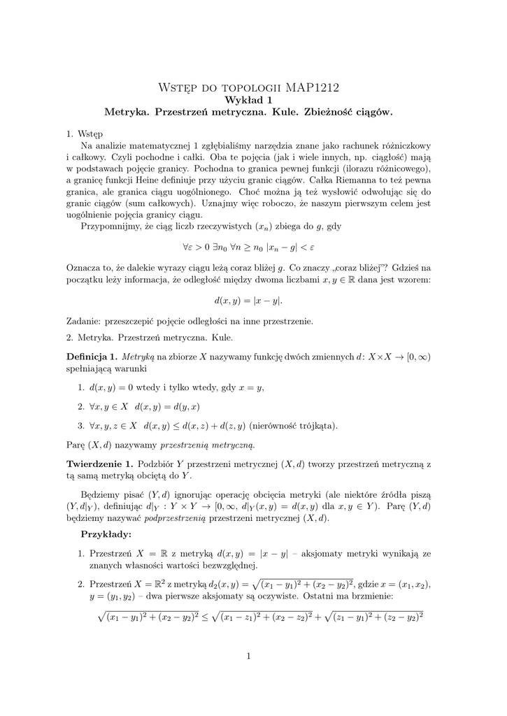 Wstęp do topologii MAP1212
