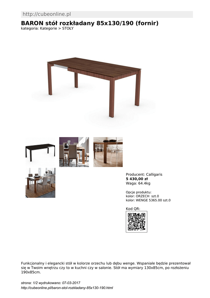 http://cubeonline.pl BARON stół rozkładany 85x130/190 (fornir) kategoria: Kategorie > STOŁY Producent: Calligaris 5 430,00 zł Waga: 64.4kg Opcje produktu: kolor: ORZECH szt.0 kolor: WENGE 5365.00 szt.0 Kod QR: Funkcjonalny i elegancki stół w kolorze orzechu lub dębu wenge. Wspaniale będzie prezentował się w Twoim wnętrzu czy to w kuchni czy w salonie. Stół ma wymiary 130x85cm, po rozłożeniu 190x85cm. strona: 1/2 wydrukowano: 07-03-2017 http://cubeonline.pl/baron-stol-rozkladany-85x130-190.html WYMIARY (cm): wysokość calkowita: 75 szerokość: 85 długość: 130/190 MATERIAŁ: nogi - drewno blat - fornir orzechowy lub fornir dębowy wenge Inne produkty tej firmy: http://cubeonline.pl/manufacturer/calligaris strona: 2/2 wydrukowano: 07-03-2017 http://cubeonline.pl/baron-stol-rozkladany-85x130-190.html