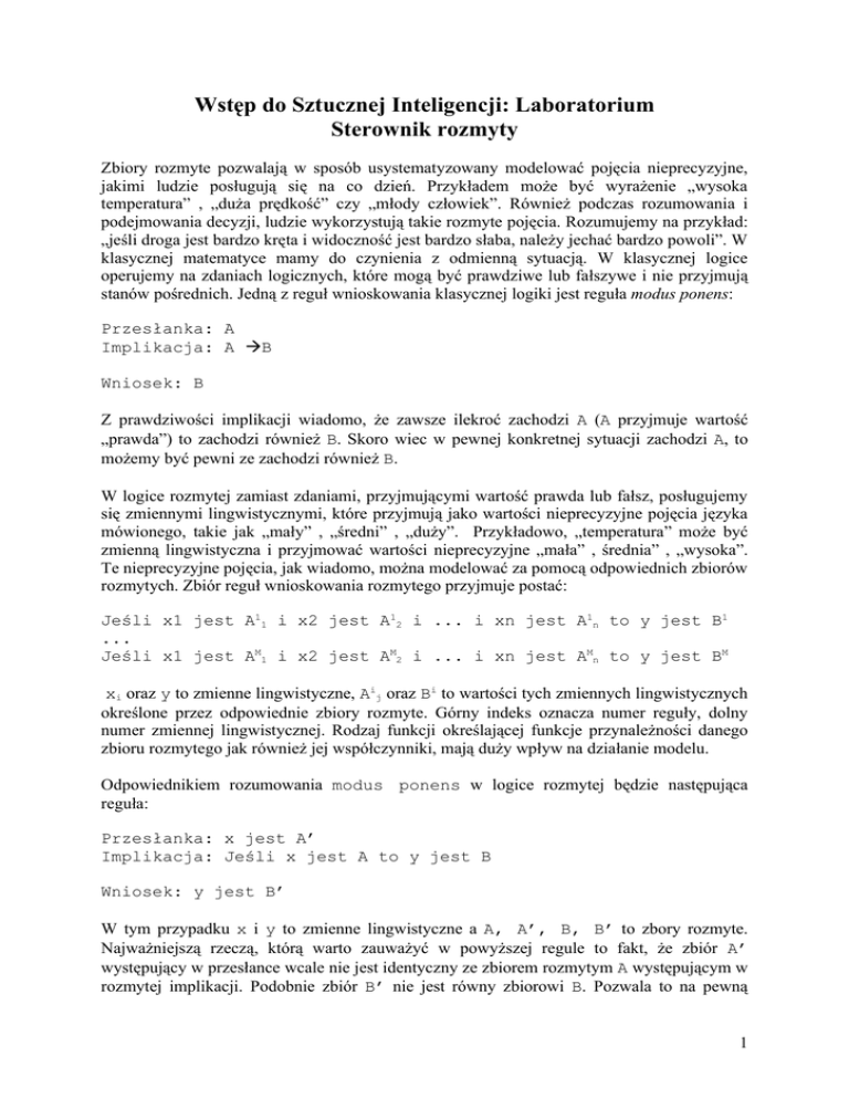 rozmytych. Zbiór reguł wnioskowania rozmytego przyjmuje postać: