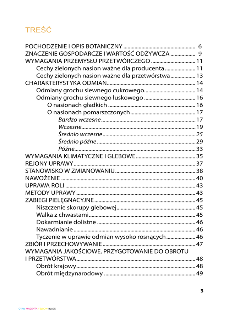 TREŚĆ POCHODZENIE I OPIS BOTANICZNY..................................................... 6 ZNACZENIE GOSPODARCZE I WARTOŚĆ ODŻYWCZA................... 9 WYMAGANIA PRZEMYSŁU PRZETWÓRCZEGO................................. 11 Cechy zielonych nasion ważne dla producenta....................... 11 Cechy zielonych nasion ważne dla przetwórstwa................... 13 CHARAKTERYSTYKA ODMIAN................................................................. 14 Odmiany grochu siewnego cukrowego...................................... 14 Odmiany grochu siewnego łuskowego...................................... 16 O nasionach gładkich................................................................ 16 O nasionach pomarszczonych................................................ 17 Bardzo wczesne....................................................................17 Wczesne..................................................................................19 Średnio wczesne...................................................................25 Średnio późne.......................................................................29 Późne.......................................................................................33 WYMAGANIA KLIMATYCZNE I GLEBOWE............................................ 35 REJONY UPRAWY......................................................................................... 37 STANOWISKO W ZMIANOWANIU........................................................... 38 NAWOŻENIE.................................................................................................. 40 UPRAWA ROLI............................................................................................... 43 METODY UPRAWY....................................................................................... 43 ZABIEGI PIELĘGNACYJNE.......................................................................... 45 Niszczenie skorupy glebowej.......................................................... 45 Walka z chwastami.............................................................................. 45 Dokarmianie dolistne........................................................................ 46 Nawadnianie......................................................................................... 46 Tyczenie w uprawie odmian wysoko rosnących...................... 46 ZBIÓR I PRZECHOWYWANIE.................................................................... 47 WYMAGANIA JAKOŚCIOWE, PRZYGOTOWANIE DO OBROTU I PRZETWÓRSTWA....................................................................................... 48 Obrót krajowy....................................................................................... 48 Obrót międzynarodowy................................................................... 49 3 cyan magenta yellow black UPRAWA GROCHU NA SUCHE NASIONA............................................ 50 Desykacja............................................................................................... 51 Zbiór i przechowywanie................................................................... 51 Wymagania jakościowe.................................................................... 51 OCHRONA GROCHU PRZED CHOROBAMI I SZKODNIKAMI......... 52 Ważniejsze choroby grochu i ich zwalczanie............................ 53 Choroby wirusowe...................................................................... 53 Fuzaryjne więdnięcie grochu.................................................. 53 Askochytoza grochu................................................................... 54 Mączniak rzekomy...................................................................... 54 Mączniak prawdziwy.................................................................. 54 Ważniejsze szkodniki grochu i ich zwalczanie.......................... 56 Oprzędzik pręgowany............................................................... 56 Pachówka strąkóweczka........................................................... 57 Paciornica grochowianka......................................................... 58 Mszyca grochowa........................................................................ 59 Literatura uzupełniająca............................................................................ 60 4 cyan magenta yellow black