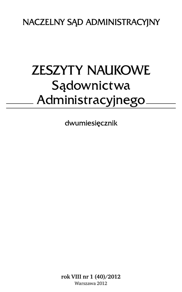 rok VIII nr 1 (40)/2012 Warszawa 2012 WYDAWCA Naczelny Sąd Administracyjny KOMITET REDAKCYJNY Barbara Adamiak, Stefan Babiarz, Irena Chojnacka, Bogusław Gruszczyński, Roman Hauser, Małgorzata Sawicka-Jezierczuk (sekretarz redakcji), Andrzej Skoczylas, Janusz Trzciński (redaktor naczelny), Maria Wiśniewska, Andrzej Wróbel Tłumaczenie na język angielski: Michał Mróz Korekta: Justyna Woldańska ADRES REDAKCJI Naczelny Sąd Administracyjny 00–011 Warszawa, ul. G.P. Boduena 3/5 tel. 22 826–74–88, fax 22 826–74–54, e-mail: [email protected] © Copyright by Naczelny Sąd Administracyjny Warszawa 2012 ISSN 1734–803X Nr indeksu 204358 „Zeszyty Naukowe Sądownictwa Administracyjnego” znajdują się w wykazie czasopism punktowanych przez Ministerstwo Nauki i Szkolnictwa Wyższego na potrzeby oceny parametrycznej jednostek naukowych. LexisNexis Polska Sp. z o.o. Ochota Office Park 1, Al. Jerozolimskie 181, 02–222 Warszawa tel. 22 572 95 00, faks 22 572 95 68 Infolinia: 22 572 99 99 www.lexisnexis.pl.; e-mail: [email protected] Księgarnia Internetowa dostępna ze strony www.LexisNexis.pl Druk ukończono w lutym 2012 roku. Nakład 1000 egz. SPIS TREŚCI STUDIA I ARTYKUŁY Prof. dr hab. Andrzej Gomułowicz (Uniwersytet im. Adama Mickiewicza w Poznaniu) Sędzia a „poprawianie” prawa – zasadnicze dylematy .......................................................... Summary .................................................................................................................................... 9 16 Sędzia Dariusz Chaciński (sędzia WSA w Warszawie) Zakres ochrony zabytków nieruchomych na tle wybranych orzeczeń WSA w Warszawie .......................................................................................................................... Summary .................................................................................................................................... 18 30 Sędzia Tomasz Grossmann (sędzia WSA w Poznaniu) Charakter prawny terminu do wniesienia sprzeciwu wobec zgłoszenia robót budowlanych – próba reinterpretacji art. 30 ust. 5 prawa budowlanego ......................... Summary .................................................................................................................................... 31 39 Dr Agata Kosieradzka-Federczyk (Wyższa Szkoła Informatyki Stosowanej i Zarządzania w Warszawie) „Raport o oddziaływaniu przedsięwzięcia na środowisko” w orzecznictwie sądów administracyjnych ................................................................................................................ Summary .................................................................................................................................... 41 56 Dr Dariusz Strzelec (adiunkt, Uniwersytet Łódzki) Stosowanie procedury podatkowej – naruszenia przepisów mogące mieć wpływ na wynik sprawy ................................................................................................................... Summary .................................................................................................................................... 57 70 ORZECZNICTWO I. Trybunał Sprawiedliwości Unii Europejskiej (wybór i opracowanie: Andrzej Wróbel) 1. Dyrektywa 2004/38/WE – Prawo stałego pobytu– Legalny pobyt – Pobyt na podstawie prawa krajowego – Okresy pobytu ukończone przed przystąpieniem do Unii Europejskiej państwa pochodzenia zainteresowanego obywatela Wyrok TSUE z dnia 21 grudnia 2011 r. w sprawach połączonych C-424/10 i C-425/10 Tomasz Ziółkowski (C-424/10), Barbara Szeja, Maria-Magdalena Szeja, Marlon Szeja (C-425/10) przeciwko Land Berlin, przy udziale: Vertreter des Bundesinteresses beim Bundesverwaltungsgericht ......................................................... 2. Wspólny europejski system azylowy – Rozporządzenie (WE) nr 343/2003 – Pojęcie „kraje bezpieczne” – Transfer osoby ubiegającej się o azyl do właściwego państwa członkowskiego –Wzruszalne domniemanie przestrzegania praw podstawowych przez to państwo członkowskie – Protokół (nr 30) w sprawie stosowania Karty praw podstawowych Unii Europejskiej do Rzeczypospolitej Polskiej i Zjednoczonego Królestwa 71 4 Zeszyty Naukowe Sądownictwa Administracyjnego 1 (40)/2012 Wyrok TSUE z dnia 21 grudnia 2011 r. w sprawach połączonych C-411/10 i C-493/10 N.S. (C-411/10) przeciwko Secretary of State for the Home Department i M.E. (C-493/10), A.S.M., M.T., K.P., E.H. przeciwko Refugee Applications Commissioner, Minister for Justice, Equality and Law Reform, przy udziale: Amnesty International Ltd and the AIRE Centre (Advice on Individual Rights in Europe) (UK) (C-411/10), United Nations High Commissioner for Refugees (UNHCR) (UK) (C-411/10), Equality and Human Rights Commission (EHRC) (C-411/10), Amnesty International Ltd and the AIRE Centre (Advice on Individual Rights in Europe) (IRL) (C-493/10), United Nations High Commissioner for Refugees (UNHCR) (IRL) (C-493/10) ........................................ II. III. IV. V. VI. Europejski Trybunał Praw Człowieka (wybór i opracowanie: Agnieszka Wilk-Ilewicz) „Sąd ustanowiony ustawą” Wyrok ETPC z dnia 25 października 2011 r., sprawa Richert przeciwko Polsce (skarga nr 54809/07) ................................................................................................................... Trybunał Konstytucyjny (wybór: Irena Chojnacka, opracowanie: Mieszko Nowicki) 1. Wyrok TK z dnia 16 listopada 2011 r. sygn. akt SK 45/09 [dot. jurysdykcji, uznawania i wykonywania orzeczeń sądowych w sprawach cywilnych i handlowych (rozporządzenie Rady nr 44/2001)] ............................................................................ 2. Wyrok TK z dnia 6 grudnia 2011 r. sygn. akt SK 3/11 [dot. udziału osoby piastującej funkcję monokratycznego organu centralnej administracji rządowej w postępowaniu z wniosku o ponowne rozpatrzenie za