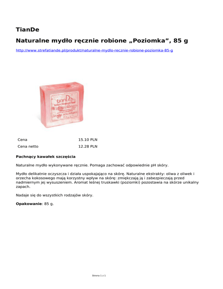 TianDe Naturalne mydło ręcznie robione „Poziomka”, 85 g