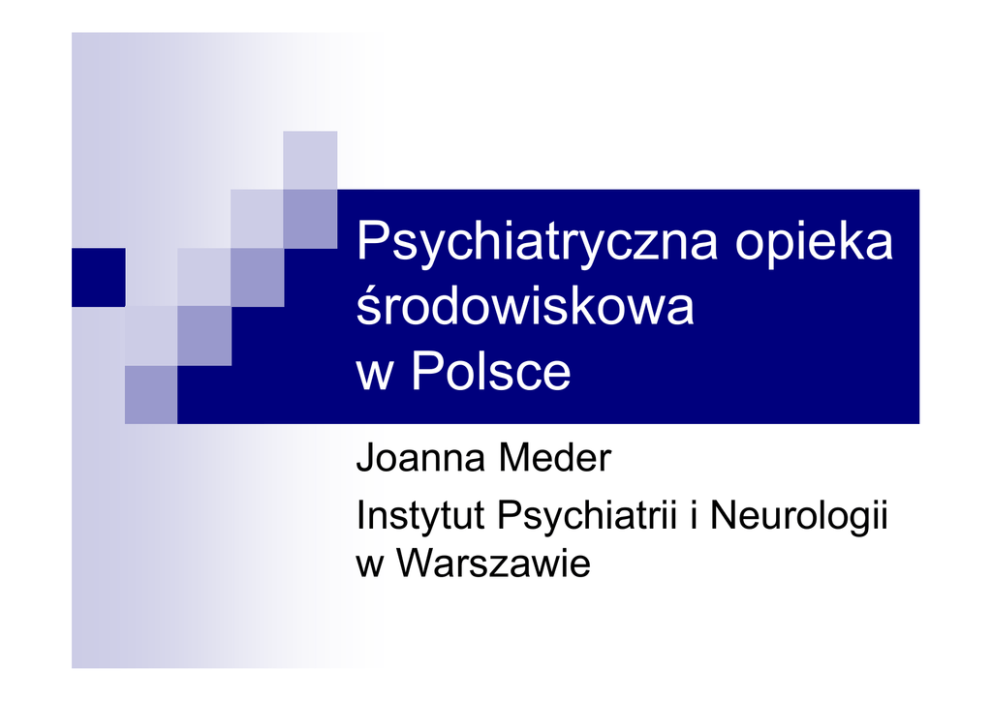 Psychiatryczna opieka środowiskowa w Polsce Joanna Meder Instytut Psychiatrii i Neurologii w Warszawie Zdrowie psychiczne jest jednym z najwaŜniejszych zasobów współczesnego społeczeństwa Jako główny cel opieki psychiatrycznej wskazuje się umoŜliwienie osobie chorej funkcjonowania w społeczeństwie – moŜliwość uczenia się, pracy Środowiskowy model opieki psychiatrycznej pozwala choremu na wykorzystanie zasobów lokalnego środowiska Eksperci na całym świecie wskazują psychiatrię środowiskową jako model bliŜszy potrzebom chorego Opieka psychiatryczna w Polsce Przewaga tradycyjnego modelu instytucjonalnego chorzy leczeni w ośrodkach zamkniętych Od lat 70. XX wieku obserwowany pozytywny, choć bardzo powolny, trend zmian w kierunku modelu środowiskowego Koszty leczenia psychiatrycznego wykazują stały wzrost w 2006 r. – 1 169 877 zł, co stanowi 3,2% wszystkich wydatków NFZ na świadczenia zdrowotne w krajach Unii Europejskiej wskaźnik ten oscyluje w ok. 10% Dlaczego Raport? Raport Psychiatryczna opieka środowiskowa w Polsce został opracowany, by wesprzeć prace decydentów nad przepisami wykonawczymi oraz wskazać jakie zmiany, krok po kroku, powinny zostać wdroŜone. Przekształcanie systemu opieki psychiatrycznej Światowi eksperci zwracają szczególną uwagę na zapewnienie odpowiedniego poziomu opieki wszystkim grupom chorych, zarówno osobom z lekkimi zaburzeniami, jak i osobom z powaŜnymi chorobami, np. schizofrenia, choroba afektywna dwubiegunowa, cięŜka depresja lub otępienie. Doświadczenia innych krajów Wielka Brytania - prekursor zmian w Europie Lata 40.-50. XX w. - wprowadzenie formuły opieki dziennej przy szpitalach psychiatrycznych 1959 r. – wezwanie do ograniczania liczby łóŜek w duŜych ośrodkach psychiatrycznych na rzecz tworzenia łóŜek psychiatrycznych w szpitalach ogólnych, szpitalnej opieki dziennej i ośrodków środowiskowych (Mental Health Act, The Hospital Plan for England and Wales) Stany Zjednoczone/Włochy Szybka redukcja liczby łóŜek w szpitalach psychiatrycznych Przeniesienie osób chorych z instytucji zamkniętych do społeczeństwa bez zapewnienia rozwiązań uwzględniających potrzeby chorych W efekcie najcięŜej chorzy pozostali bez pomocy, gdyŜ nie przyzwyczajeni do funkcjonowania w społeczeństwie nie potrafili korzystać z oferowanych rozwiązań Etapy przekształcania systemu opieki psychiatrycznej w Polsce Etap I – stworzenie ogólnopolskiej sieci poradni zdrowia psychicznego oraz konsekwentna edukacja społeczeństwa Etap II – tworzenie hosteli i mieszkań chronionych oraz konsekwentna edukacja społeczeństwa Etap III – zmiana struktury zasobów opieki psychiatrycznej oraz konsekwentna edukacja społeczeństwa. Etap I Prowadzenie działań edukacyjnych Zbudowanie akceptacji i przygotowanie społeczeństwa do wspierania osób z zaburzeniami psychicznymi w lokalnych społecznościach Stworzenie ogólnopolskiej sieci poradni zdrowia psychicznego Lepszy dostęp do zespołu terapeutycznego Utrzymanie ciągłości terapii skutkujące podniesieniem jej efektywności Zadania Prowadzenie opieki czynnej Zapewnienie opieki zespołu leczenia domowego Prowadzenie działań edukacyjnych Współpraca z opieką społeczną w celu aktywizacji zawodowej osób chorych Etap II Tworzenie hosteli i mieszkań chronionych Ośrodki pozwalające na stopniowe wdraŜanie osób chorych do funkcjonowania w społeczeństwie W zaleŜności od potrzeb chorych zapewniona jest opieka całodobowa (hostele) lub czasowa pomoc personelu (mieszkania chronione) Zwiększenie liczby Oddziałów Dziennych oraz stworzenie systemu transportu chorych do ośrodków Edukacja społeczeństwa Akceptacja osób chorych oraz uzyskanie przyzwolenia lokalnej społeczności na uruchomienie ośrodka Etap III Zmiana struktury zasobów opieki psychiatrycznej Sukcesywne zmniejszanie liczby izolowanych szpitali psychiatrycznych na rzecz oddziałów psychiatrycznych w szpitalach ogólnych Dopasowanie zasobów i struktury kadr do wymagań psychiatrycznej opieki środowiskowej Konsekwentna edukacja społeczeństwa Czerpiąc z doświadczeń innych państw, powinniśmy podąŜać drogą wolną od zbyt pochopnych działań pamiętając, Ŝe zmiany, które wprowadzamy mają wpływ na konkretnych ludzi i ich rodziny. Ludzi, którzy z racji wyjątkowości swojej choroby są bardziej naraŜeni na wykluczenie społeczne i dyskryminację. Dziękuję za uwagę