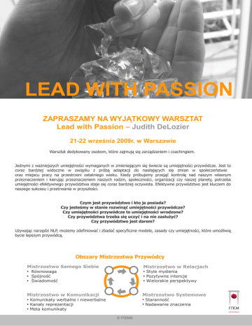 ZAPRASZAMY NA WYJĄTKOWY WARSZTAT Lead with Passion