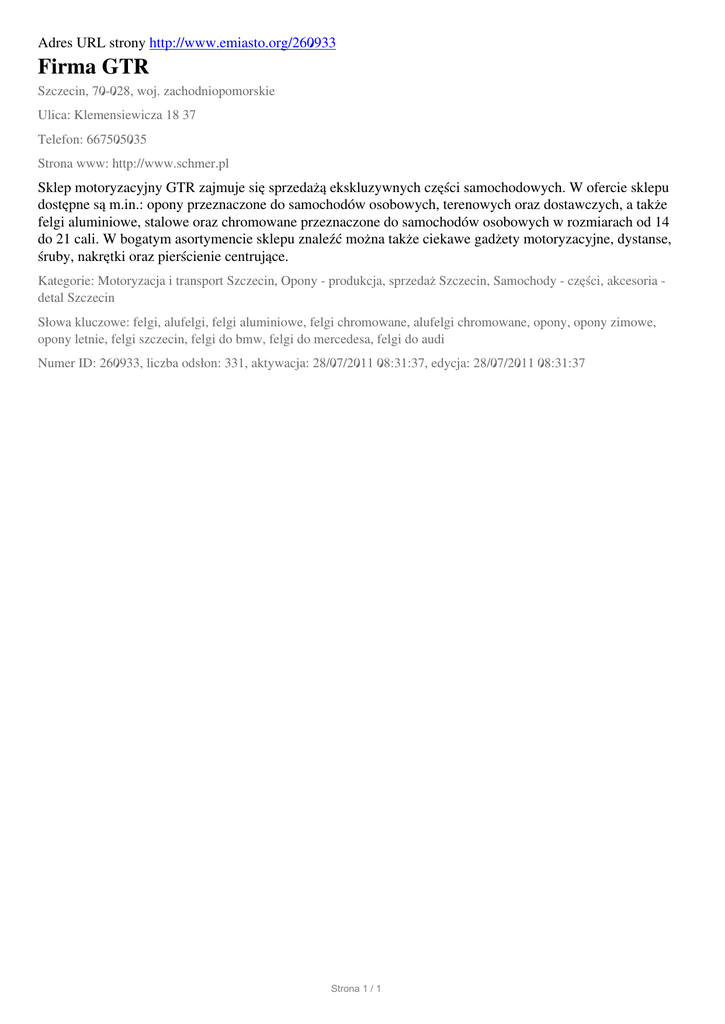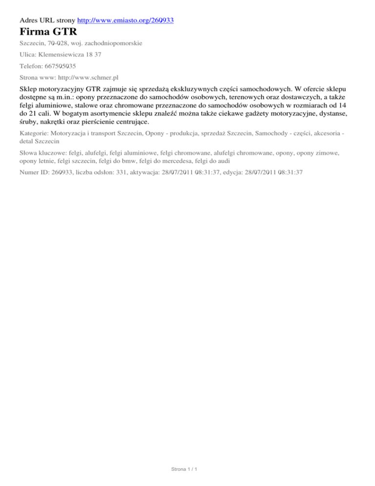 Firma GTR, Szczecin, Klemensiewicza 18 37
