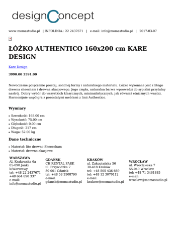 ŁÓŻKO AUTHENTICO 160x200 cm KARE DESIGN