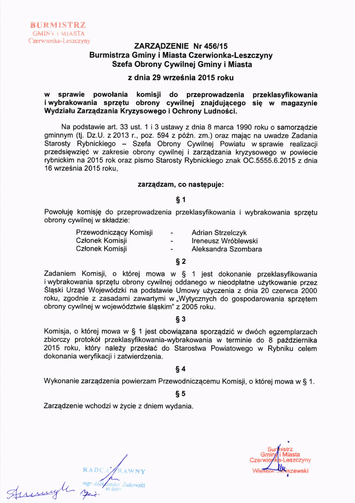 Wykonanie zarzqdzenia powierzam Przewodniczqcemu Komisji, o kt6re1 mowa w $ 1.