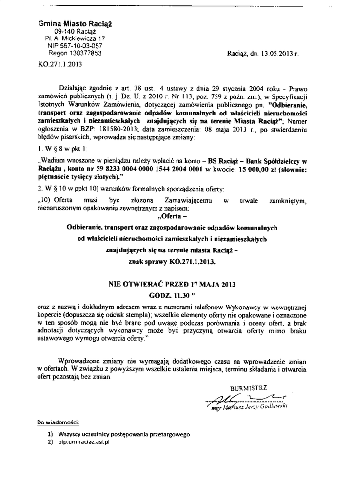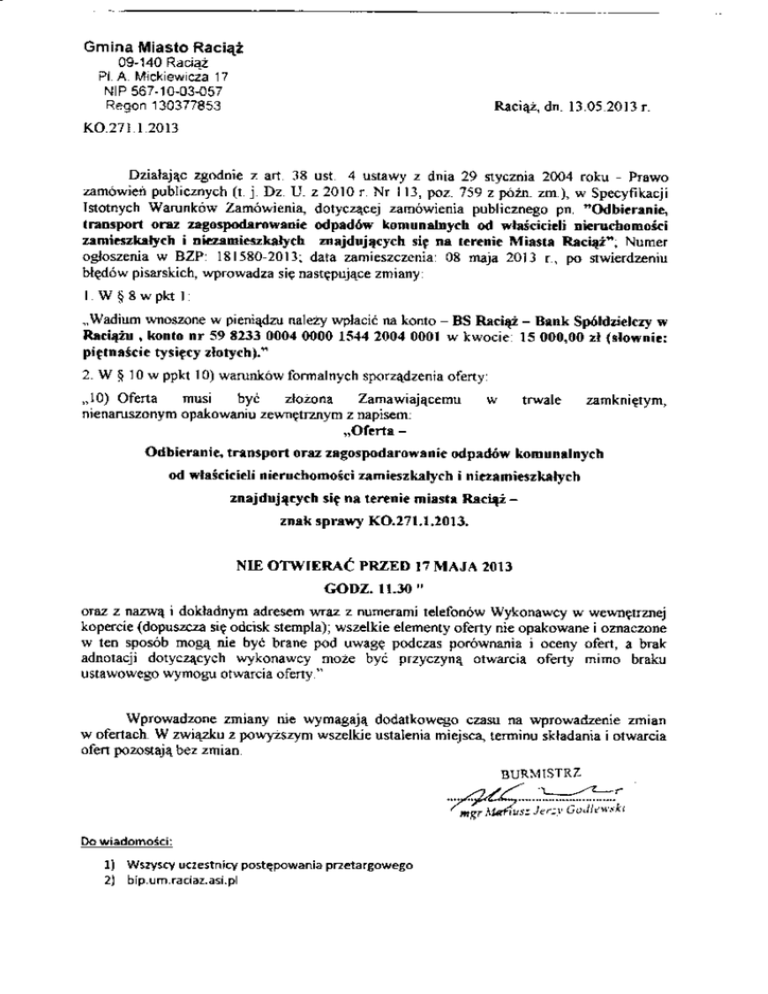ocJogenia w BzP 13|5302011: data aoieszczcnia 03 fuja 20l] r, po nwi€rdzńiu