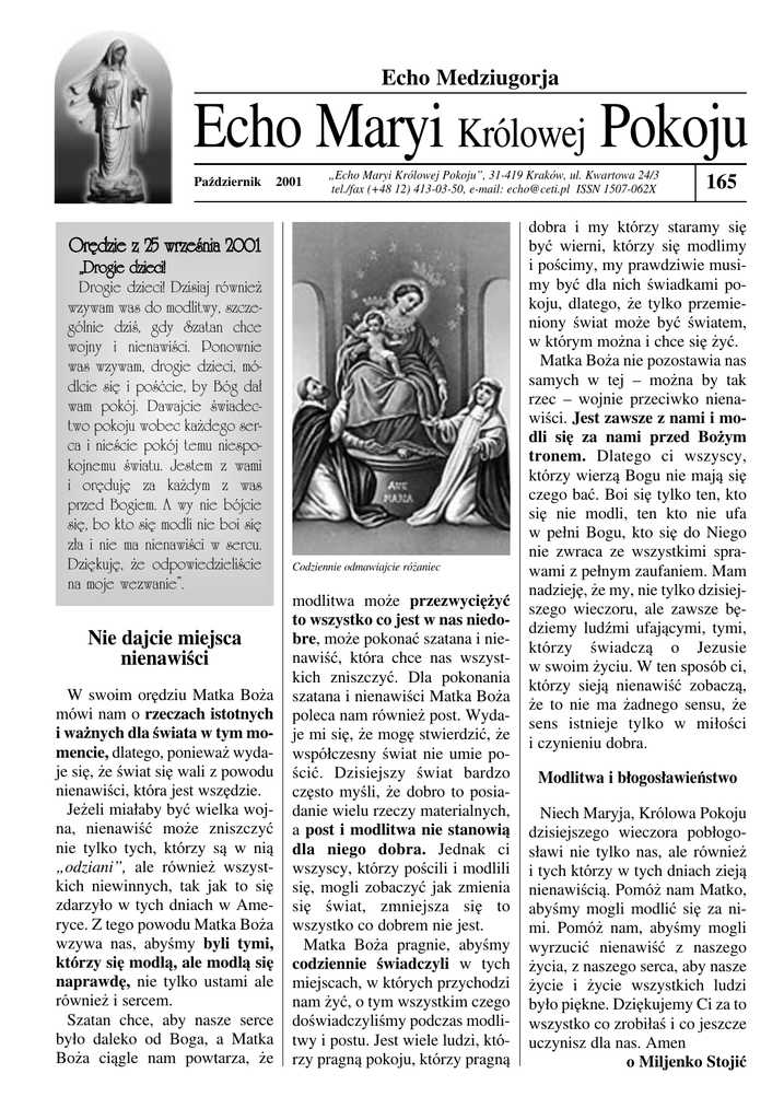2001 10 (165) - Echo Maryi Królowej Pokoju