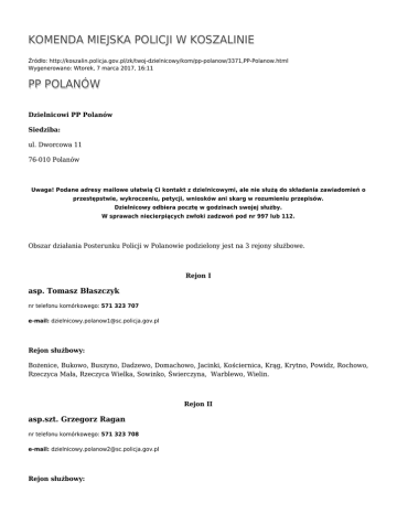 KOMENDA MIEJSKA POLICJI W KOSZALINIE PP POLANÓW