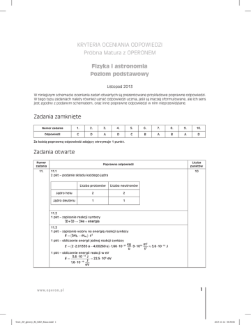 Fizyka i astronomia Poziom podstawowy KRYTERIA OCENIANIA
