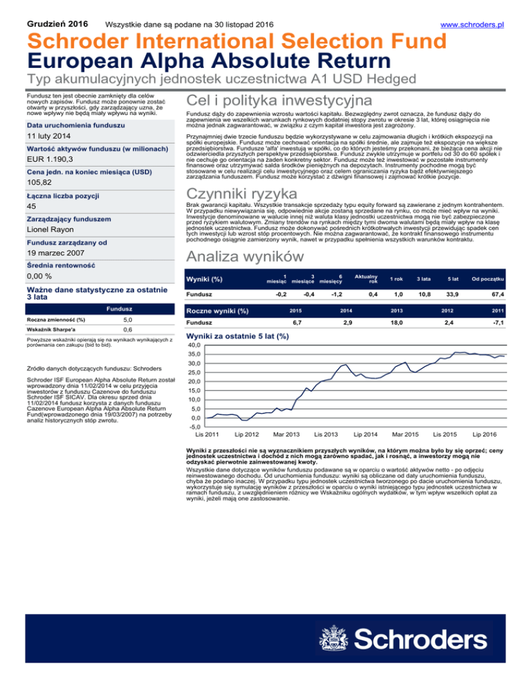 zmianie. Niniejszy dokument został wydany przez Schroder Investment Management (Luxembourg) S.A., 5, rue Höhenhof, L-1736 Senningerberg, Luksemburg. R.C.S. Luxembourg: B 37.799. Uzyskał