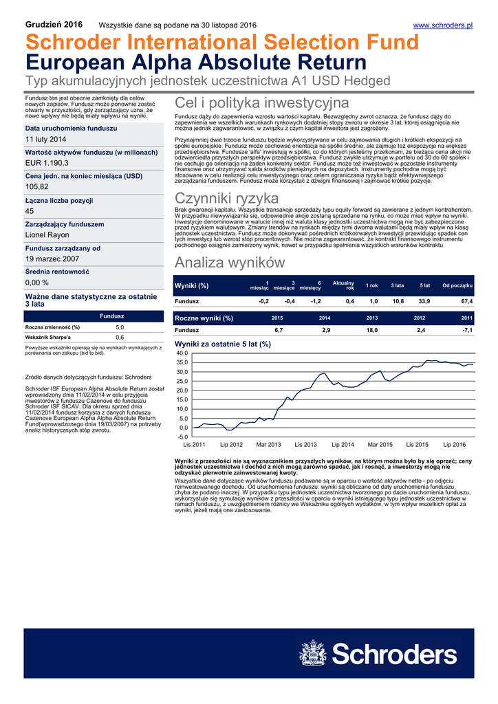 Niniejszy dokument nie stanowi oferty skierowanej do żadnej osoby ani próby ubiegania się przez jakąkolwiek osobę o uzyskanie zapisu na jednostki uczestnictwa Schroder International Selection Fund