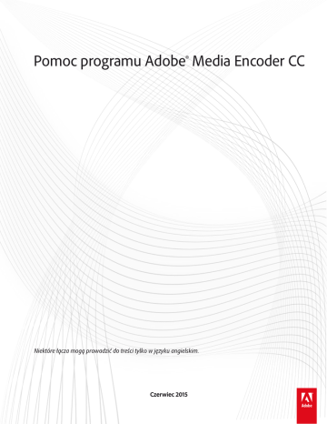 Pomoc programu Adobe® Media Encoder CC Niektóre łącza mogą prowadzić do treści tylko w języku angielskim. Czerwiec 2015 Spis treści Co nowego 1 Podsumowanie nowych funkcji 2 Kodowanie — podstawy i skrócony przewodnik 4 Informacje ogólne o programie Adobe Media Encoder 5 Kodowanie – skrócony przewodnik 10 Korzystanie z przeglądarki ustawień domyślnych 11 Dodawanie elementów do kolejki kodowania i zarządzanie nimi 15 Formaty plików obsługiwanych do importowania 19 Praca z plikami dziennika 22 Informacje o kodowaniu i kompresji wideo i audio 23 Domyślne skróty klawiaturowe 26 Wskazówki dotyczące kompresji 31 Formaty plików obsługiwanych podczas eksportu 32 Preferencje 34 Skróty klawiaturowe 37 Kodowanie i eksportowanie 38 Preferencje i ustawienia synchronizacji 39 Ustawienia eksportu — dane referencyjne 42 Niestandardowe ustawienia domyślne 56 Kodowanie i eksportowanie wideo i dźwięku 58 Zarządzanie bazą danych pamięci podręcznej multimediów 62 Co nowego 1 Podsumowanie nowych funkcji Adobe Media Encoder CC 2015 Nowości i zmiany Efekt Dostrajanie czasu Wyjście Dolby Digital Obsługa JPEG 2000 MXF Ulepszenia interfejsu użytkownika Różne aktualizacje Do góry Efekt Dostrajanie czasu Nowości w programie Adobe Media Encoder CC 2015 | Czerwiec 2015 Efekt Dostrajanie czasu inteligentnie skraca lub wydłuża czas trwania, usuwając klatki w częściach z obrazami nieruchomymi lub małymi zmianami obrazu lub cichymi przejściami. Efekt Dostrajanie czasu można znaleźć i włączyć w ustawieniach eksportu, na zakładce Efekty. Dzięki efektowi Dostrajanie czasu można zmieniać czas trwania materiałów, definiując nowy docelowy czas trwania lub względny czas trwania przez modyfikację procentowej zmiany czasu trwania. Ustawienia efektu Dostrajanie czasu są również dostępne w programie Adobe Premiere Pro. Więcej informacji można znaleźć w dokumencie Efekt Dostrajanie czasu. Do góry Wyjście Dolby Digital Nowości w programie Adobe Media Encoder CC 2015 | Czerwiec 2015 Aktualizacja programu Adobe Media Encoder CC z czerwca 2015 r. pozwala tworzyć materiały z wielokanałowym audio Dolby Digital i Dolby Digital Plus na duży ekran, do kin domowych i Internetu. Dolby Digital i Dolby Digital Plus to oferujące wysoką jakość, powszechne formaty, które przy korzystaniu ze zgodnego dekodera pozwalają miksować sygnał źródłowy według preferencji użytkownika. Ponadto serwisy YouTube i Vimeo obsługują teraz strumienie Dolby Digital. Więcej informacji można znaleźć w dokumencie Ustawienia eksportu — dane referencyjne. Do góry Obsługa JPEG 2000 MXF Poprawione w programie Adobe Media Encoder CC 2015 | Czerwiec 2015 Obecnie można dostarczać zawartość JPEG 2000 opakowaną w kontener MXF do transmisji i innych obiegów pracy wymagających tego formatu. JPEG 2000 jest wizualnie bezstratnym kodekiem, który szybko wyłania się jako standard branżowy, a także jest wyznaczonym formatem wideo dla pakietów IMF. Więcej informacji można znaleźć w dokumencie Ustawienia eksportu — dane referencyjne. 2 Do góry Ulepszenia interfejsu użytkownika Poprawione w programie Adobe Media Encoder CC 2015 | Czerwiec 2015 Jasność podświetleń można dostosować w interfejsie użytkownika, a ustawienia użytkownika można szybko znaleźć w dobrze znanym układzie panelu Preferencje. Więcej informacji można znaleźć w dokumencie Preferencje. Do góry Różne aktualizacje Poprawione w programie Adobe Media Encoder CC 2015 | Czerwiec 2015 Nowy rozdział kanałów QuickTime pozwala oszczędzić czas i usprawnić renderowanie, eksportując wiele konfiguracji wyjścia audio w tym samym pliku QuickTime, m.in. stereo i układ kanałów 5.1. Program Media Encoder otrzymał także udoskonalony dekoder ProRes (tylko komputery Mac). Ulepszone publikowanie Creative Cloud ułatwia renderowanie zawartości do folderu Creative Cloud, w tym niedomyślnych folderów. Funkcja QuickTime Rewrap pozwala łatwo transkodować materiał źródłowy opakowany w kontener MXF na format QuickTime. Dzięki nowej opcji Ustaw kod czasowy początku można łatwo przypisać niestandardowy kod czasowy początku w eksportowanych plikach. Posty z serwisów Twitter™ i Facebook nie są objęte licencją Creative Commons. Informacje prawne | Zasady prywatności online 3 Kodowanie — podstawy i skrócony przewodnik 4 Informacje ogólne o programie Adobe Media Encoder Pierwsze kroki z programem Adobe Media Encoder Przestrzenie robocze programu Adobe Media Encoder Adobe Media Encoder pełni funkcję silnika kodującego dla programów Adobe Premiere Pro, Adobe After Effects i Adobe Prelude. Można także korzystać z programu Adobe Media Encoder jako samodzielnego kodera. Aby zapoznać się z ogólnymi informacjami dotyczącymi korzystania z wszystkich funkcji Adobe Media Encoder, obejrzyj wideo autorstwa Jana Ozera. Do góry Pierwsze kroki z programem Adobe Media Encoder Korzystając z programu Adobe Media Encoder możesz wyeksportować wideo na strony obsługujące udostępnianie wideo, takie jak YouTube i Vimeo, a także do urządzeń, począwszy od profesjonalnych magnetowidów po odtwarzacze DVD, telefony komórkowe i telewizory HD. Dodatkowe zasoby Obieg pracy i informacje ogólne na temat eksportowania wideo oraz audio z programu Premiere Pro przy użyciu programu Adobe Media Encoder Nakładanie efektów z pomocą programu Adobe Media Encoder Eksportowanie podpisów zamkniętych z programu Premiere Pro do programu Adobe Media Encoder Przeczytaj ten wpis na blogu poświęcony aplikacjom wideo firmy Adobe, który zawiera materiał filmowy prezentujący funkcję Publikowanie w lokalizacjach programu Adobe Media Encoder Do góry Przestrzenie robocze programu Adobe Media Encoder Program Adobe Media Encoder ma cztery główne panele, które umożliwiają kodowanie plików. Możesz pogrupować panele jako karty w pojedynczej ramce lub rozmieścić je swobodnie jako oddzielne pan