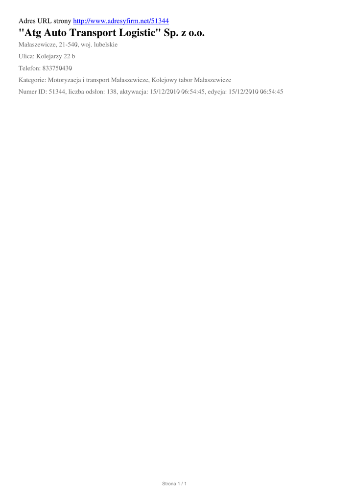 "Atg Auto Transport Logistic" Sp. z oo, Malaszewicze