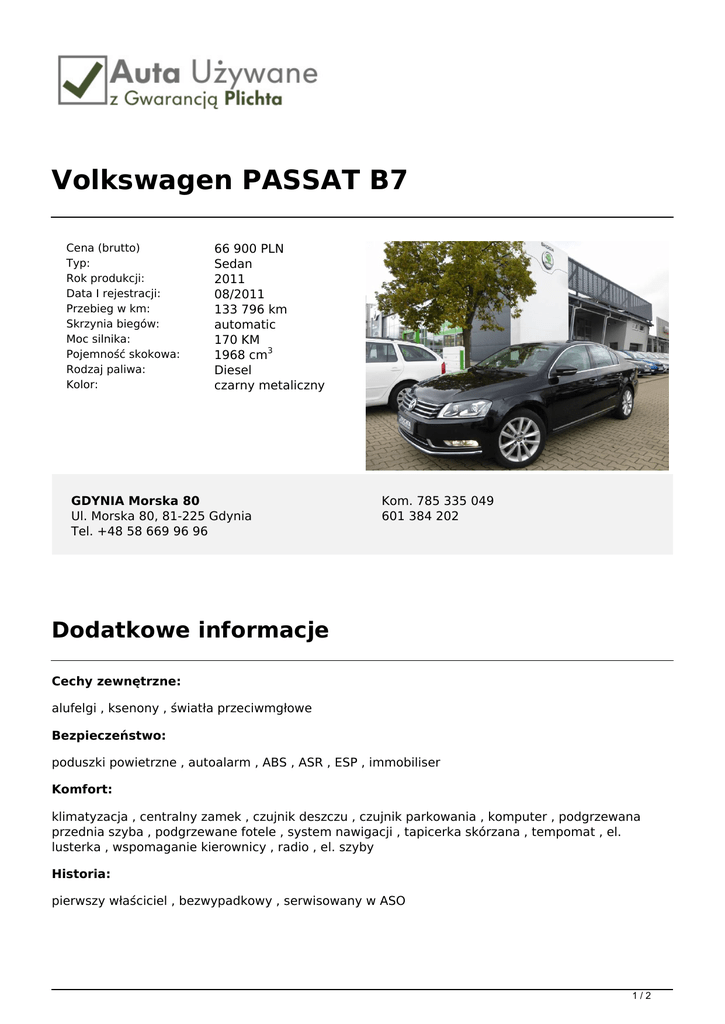 Volkswagen PASSAT B7 - Auta używane z gwarancją Plichta