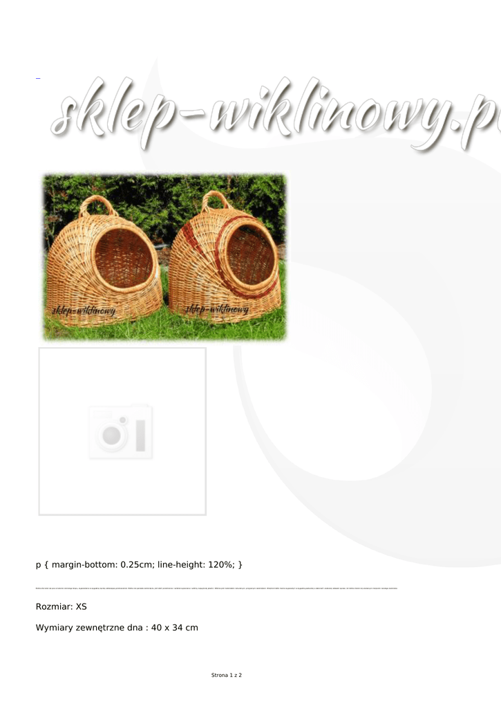 Klatka dla kota lub psa w kolorze ciemnego brązu, wyposażona w wygodną rączkę ułatwiającą przenoszenie. Klatka nie posiada zamknięcia, jest dość przestronna i solidnie wykonana z wikliny najwyższej jakości. Wiklina jest materiałem naturalnym- przyjaznym zwierzętom. Wnętrze klatki można wyposażyć w wygodną poduszkę a obecność ulubionej zabawki sprawi, że klatka stanie się ulubionym miejscem naszego zwierzaka.