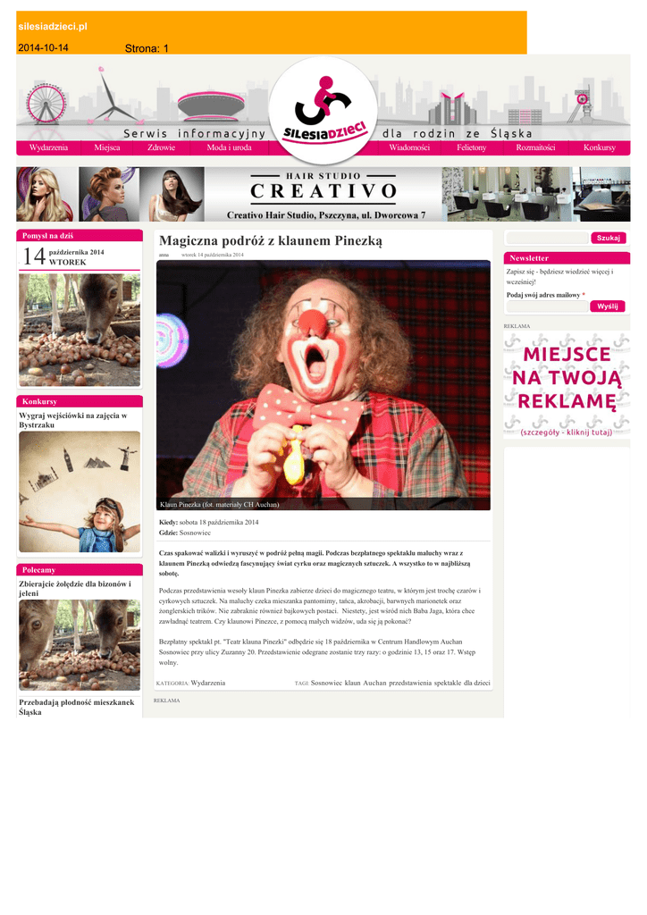 Magiczna podróż z klaunem Pinezką | Silesia Dzieci
