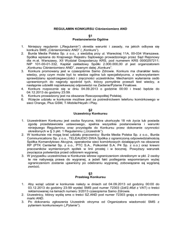 Regulamin Konkurs "Ciśnieniomierz AND" (Samo