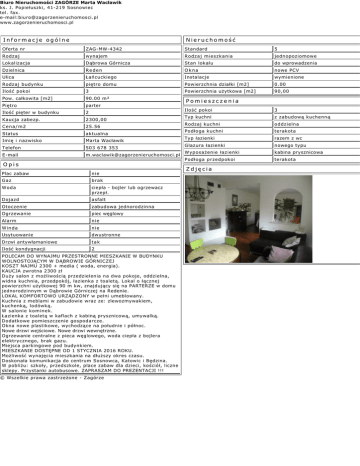 Drukuj PDF - Biuro Nieruchomości ZAGÓRZE