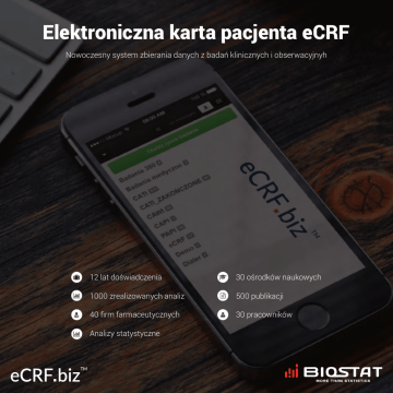 Elektroniczna karta pacjenta eCRF Nowoczesny system zbierania danych z badań klinicznych i obserwacyjnyh 12 lat doświadczenia 30 ośrodków naukowych 1000 zrealizowanych analiz 500 publikacji 40 firm farmaceutycznych 30 pracowników Analizy statystyczne Najnowocześniejsze narzędzie badawcze dla nauki i biznesu Monitorowanie liczby włączonych pacjentów oraz statystyk wyników badań Wytyczne FDA (ang. Food and Drug Administration) - zgodność z Title 21 CRF Part 11 Mailing – powiadamianie o zdarzeniach niepożądanych drogą mailową eCRF biz TM Kontrola poprawności i kompletności wpisów na etapie wprowadzania danych Aplikacja do obsługi programów badawczych Audit trail – śledzenie zmian wartości wpisów ... Data query – mechanizm zapytań do wpisów i komunikacji użytkowników 1 Łatwe, bezpieczne i szybkie pozyskiwanie wyników eCRF biz TM Dostęp z dowolnego miejsca za pomocą przeglądarki internetowej Intuicyjny, przyjazny interfejs systemu zł Obsługa administracyjno-księgowa uczestników Zalety Responsywna aplikacja webowa Audit Trail Data query Wielodostęp Randomizacja Bezpieczeństwo Kontrola poprawności i kompletności wpisów Wytyczne FDA Analizy statystyczne Przykładowe moduły i funkcje Podpowiedzi i autouzupełniania nazw leków i jednostek chorobowych (ICD 10) Statystyki i raportowania Zdarzenia niepożądane Zarządzania przesyłaniem plików multimedialnych Zastosowania eCRF biz TM Badania kliniczne dla faz I-IV Badania obserwacyjne Badania PMS i market research Rejestry medyczne Analizy/testy parametryczne i nieparametryczne Analizy korelacji, regresji Analiza czynnikowa Analiza przeżycia Kaplana-Meiera (survival analysis) Statystyki opisowe Opracowanie wyników zgodnie ze standardami czasopism Master Journal List (lista filadelfijska) Marian Płaszczyca Head of Statistics & IT [email protected] +48 666 069 834 Biostat ul. Kowalczyka 17 44-206 Rybnik (+48) 668 300 664 (+48) 22 12 28 025 (+48) 32 42 21 707 [email protected] www.biostat.com.pl Równoległe doświadczenie biznesowe i naukowe powered by: