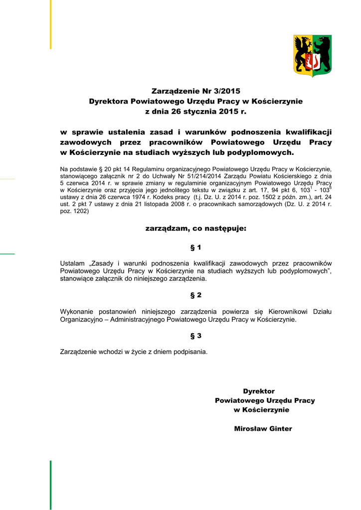 Zarządzenie Nr 3/2015 Dyrektora Powiatowego Urzędu Pracy w