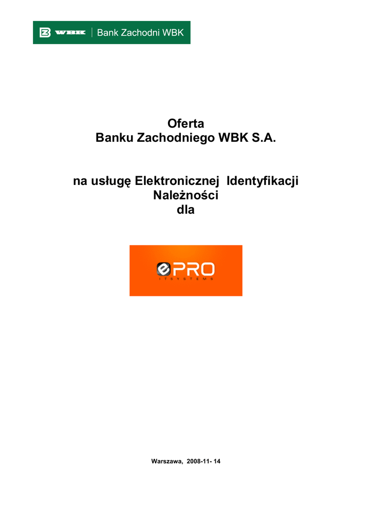 Oferta Banku Zachodniego WBK S.A. na usługę Elektronicznej