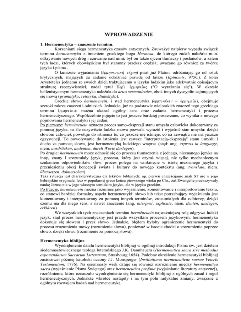 1. Hermeneutyka – znaczenie terminu.